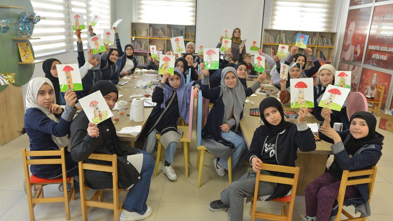 Rasim Özdenören Çocuk Kütüphanesi ev sahipliğinde gerçekleştirilen atölyede minikler, sanatla iç içe keyifli bir gün geçirdi. Etkinlikte çocuklar hem birlikte üretmenin hem de hayal güçlerini özgürce ifade etmenin mutluluğunu yaşadı. Programın konuğu olan çocuk kitabı çizeri Fatma Betül Yıldız, minik katılımcılara bir kitabın fikir aşamasından baskıya kadar uzanan yayın sürecini anlattı.