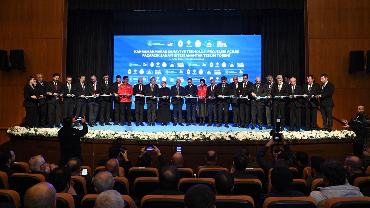 Sanayi ve Teknoloji Bakanı Mehmet Fatih Kacır’ın katılımıyla “Kahramanmaraş Sanayi ve Teknoloji Projeleri Açılışı ve Pazarcık Sanayi Sitesi Anahtar Teslim Töreni” gerçekleştirildi. Necip Fazıl Kısakürek Kültür Merkezi’nde düzenlenen programa; 66. Hükümet Tarım ve Orman Bakanı Prof. Dr. Vahit Kirişci, Vali Mükerrem Ünlüer, AK Parti Kahramanmaraş Milletvekilleri Ömer Oruç Bilal Debgici, Tuba Köksal, Mevlüt Kurt ve İrfan Karatutlu, Büyükşehir Belediye Başkanı Fırat Görgel, AK Parti İl Başkanı Muhammed Burak Gül, Kahramanmaraş Ticaret ve Sanayi Odası Başkanı Mustafa Buluntu, Ticaret Borsası Başkanı Mustafa Narlı, iş insanları, sanayi temsilcileri ve çok sayıda vatandaş katıldı.