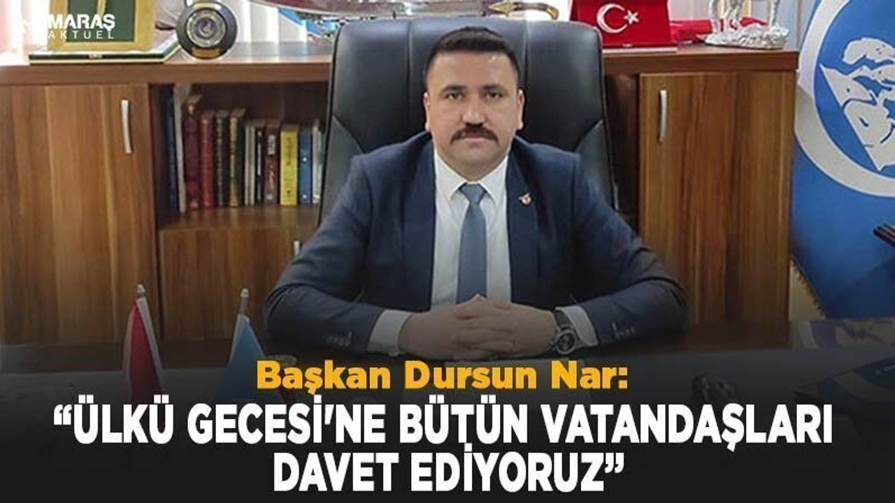 17 Eylül Cumartesi günü saat 19.00'da başlayacak program öncesinde konuşan Başkan Dursun Nar, "Ülkü Ocaklarını Allah var etsin, soluğumuz kesilmesin. Tek kurtuluşumuz milliyetçi harekettir başka çare yok. Biz ülkenin geleceğiyiz, biz bu ülkenin sigortayız. Ülkü Ocakları Kahramanmaraş İl Başkanlığı olarak 17 Eylül Cumartesi günü Milli İrade Meydanı'nda inşallah güzel bir etkinlik yapacağız. 3 kıymetli sanatçımız katılım gösteren vatandaşlara unutamayacakları bir müzik şöleni yapacak. Bütün vatandaşlarımızı bu etkinliğe davet ediyorum" dedi.
