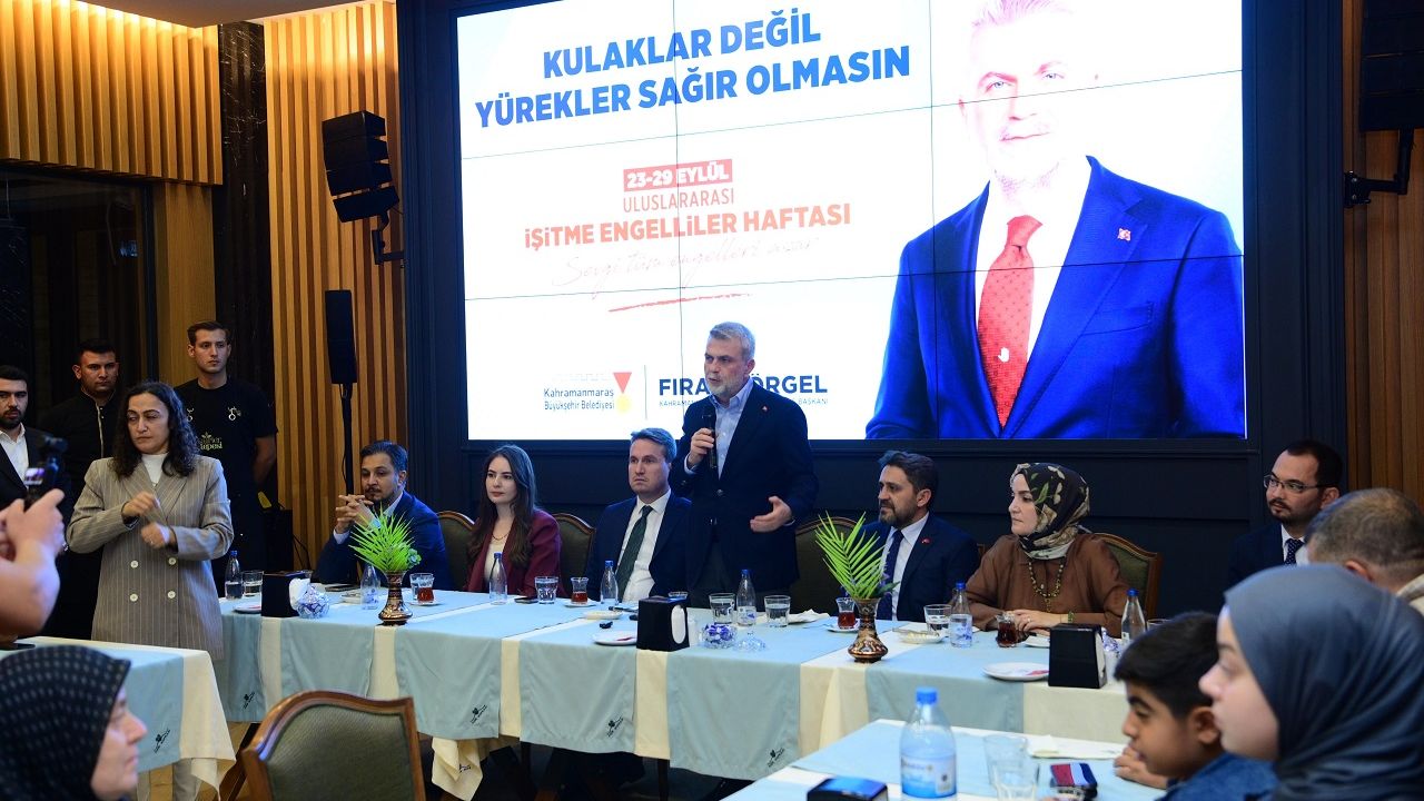 Kahramanmaraş Büyükşehir Belediye Başkanı Fırat Görgel, çeşitli etkinlik ve faaliyetlerde özel gereksinimli vatandaşlarla bir araya gelmeye devam ediyor. Bu kapsamda, İşitme Engelliler Haftası dolayısıyla düzenlenen özel programda Başkan Görgel, Büyükşehir Belediyesi bünyesinde görev yapan işitme engelli personeller ve aileleriyle bir araya geldi. Görgel, engelli bireylerin hayatın her alanında aktif şekilde yer almasının son derece kıymetli olduğunu ifade ederek, Büyükşehir Belediyesi olarak bu konuda her zaman destekçi olduklarını vurguladı.