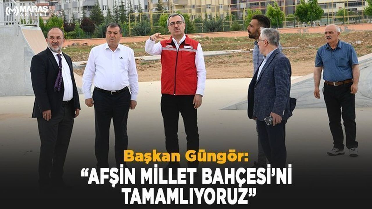 Kahramanmaraş Büyükşehir Belediye Başkanı Hayrettin Güngör, Afşin’de devam eden Millet Bahçesi çalışmalarını yerinde inceledi. Afşin Belediye Başkanı Mehmet Fatih Güven, AK Parti Afşin İlçe Başkanı İsmail Safi ve Büyükşehir Belediyesi Meclis Üyesi Ramazan Kibar’ın da yer aldığı ziyarette Büyükşehir Belediye Başkanı Hayrettin Güngör, Yeşilyurt Mahallesi’nde yer alan tesiste çalışmaların önemli ölçüde tamamlandığını belirtti. Başkan Hayrettin Güngör, yaklaşık 100 bin metrekarelik alanıyla Afşin Millet Bahçesi’nin ilçenin yeni buluşma mekanı olacağını belirtti.
