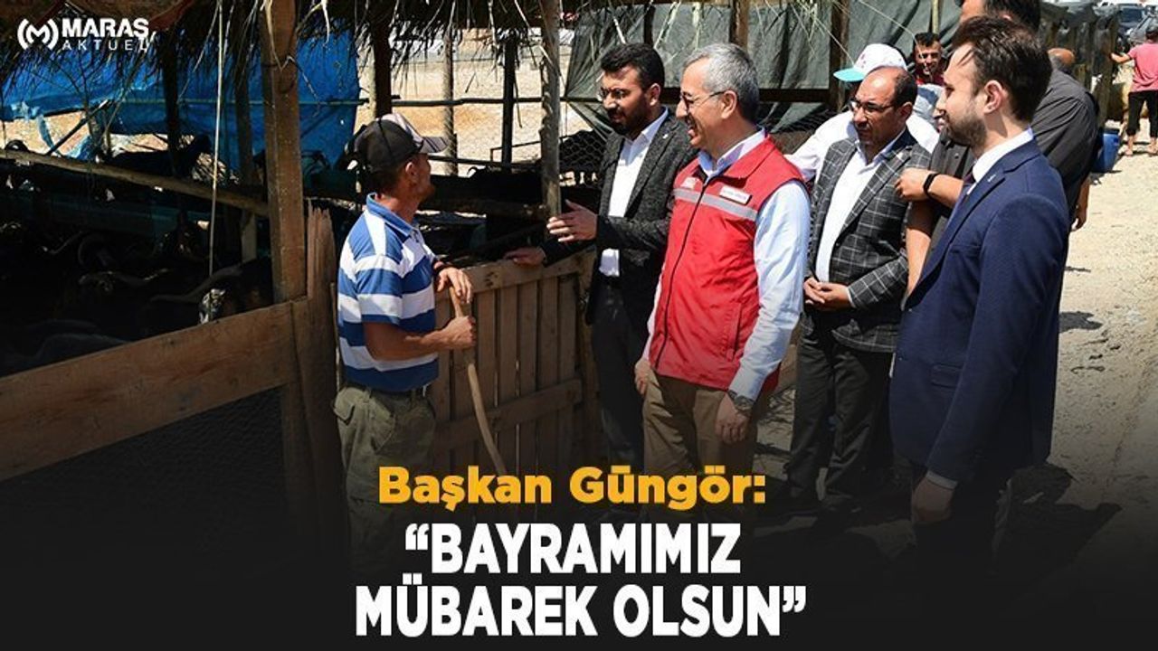 Kahramanmaraş Büyükşehir Belediye Başkanı Hayrettin Güngör, Kurban Bayramı öncesi Canlı Hayvan Borsası’nı ve kurban satış alanlarını ziyaret etti. AK Parti Onikişubat İlçe Başkanı Mücahit Kara, İlçe Gençlik Kolları Başkanı Selçuk Sinan Ak, Büyükşehir Belediyesi meclis üyeleri ve teşkilat mensuplarının da yer aldığı ziyaretlerde Başkan Hayrettin Güngör, alışveriş yapan vatandaşlarla bir araya gelerek kurban ibadetinin kabul olması temennisinde bulundu. Ziyaretler sonrası açıklamalarda bulunan Başkan Güngör, “Cumartesi günü mübarek Kurban Bayramı’mızı hep birlikte eda edeceğiz. Tüm İslam âleminin Kurban Bayramı’nı tebrik ediyorum. Bayramı’mızın tüm dünyaya huzur, barış, mutluluk getirmesini diliyorum” dedi.