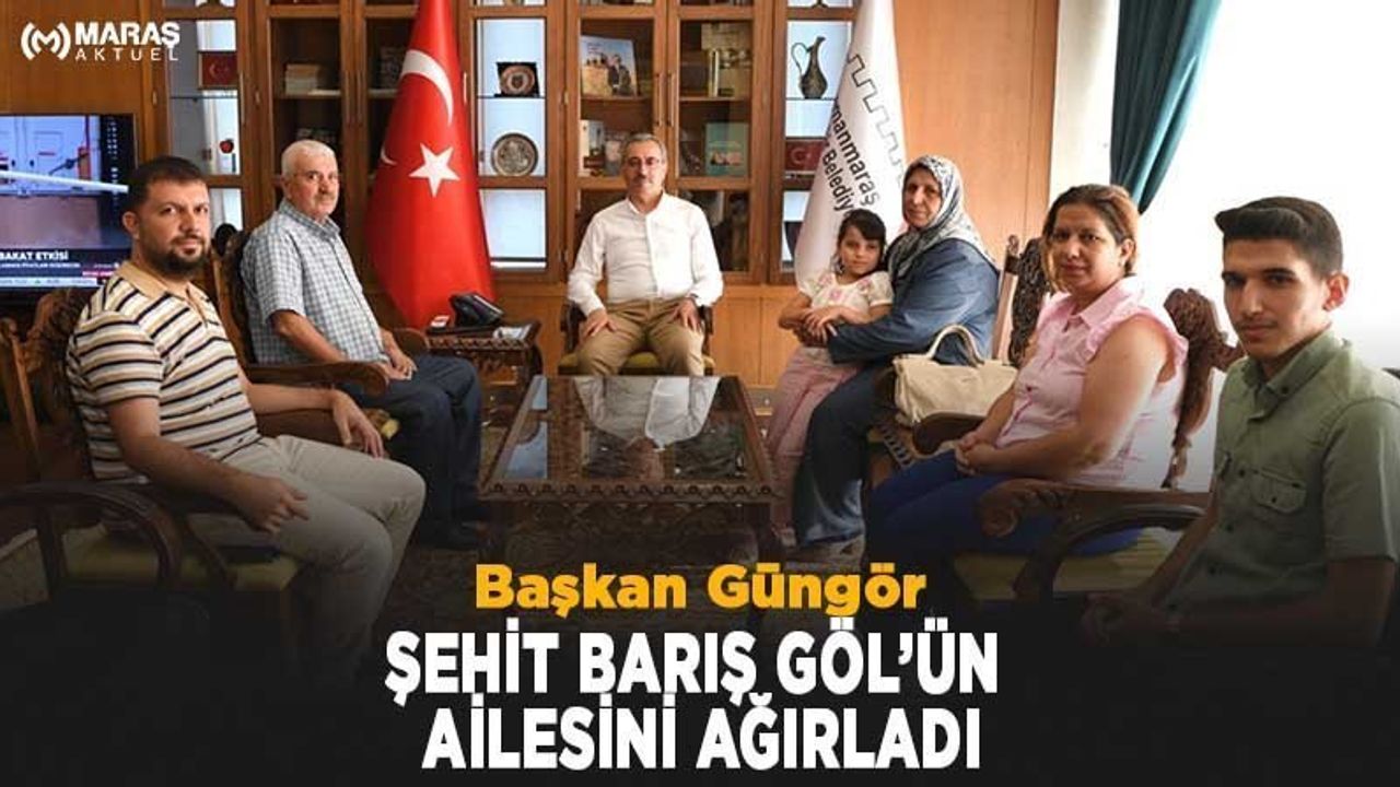 Kahramanmaraş Büyükşehir Belediye Başkanı Hayrettin Güngör, şehit Barış Göl’ün ailesini makamında ağırladı. Ziyaretten duyduğu memnuniyeti ifade eden Büyükşehir Belediye Başkanı Hayrettin Güngör, “Öncelikle şehidimiz Barış Göl kardeşimizin kıymetli ailesiyle bir araya gelmekten duyduğum memnuniyeti ifade etmek istiyorum. Nazik ziyaretleri, güler yüzleri, samimi ve içten muhabbetleri için kıymetli ailemize teşekkür ediyorum. Her zaman ifade ettiğimiz gibi millet olarak şehitlerimizin bize emaneti olan kıymetli ailelerinin ve gazilerimizin yanındayız. Onları asla yalnız bırakmadık, bırakmayacağız. Rabbim birlik ve beraberliğimizi daim eylesin. Bu vesileyle bir kez daha tüm şehitlerimize Allah’tan rahmet diliyorum” dedi.