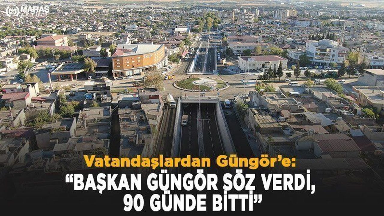 Kahramanmaraş Büyükşehir Belediye Başkanı Hayrettin Güngör’ün 10 Haziran tarihinde gerçekleştirilen temel atma töreninde 90 günde tamamlama sözü verdiği Tevfik Kadıoğlu Köprülü Kavşak projesi açılıyor. Şehrin doğusu ile batısını kesintisiz birbirine bağlayacak, Yedikuyular Kayak Merkezi’ne doğrudan ulaşım sağlayacak, 60 metre uzunluğunda çift şeritli tünel ve 500 metre uzunluğunda bağlantı yollarından oluşan Tevfik Kadıoğlu Köprülü Kavşak projesi bölge esnafı ve vatandaşlar tarafından da beğeniyle karşılandı. 80 Milyon TL yatırımla hayata geçen Tevfik Kadıoğlu Köprülü Kavşak projesinin şehir içi ulaşım açısından son derece önemli olduğunu belirten vatandaşlar, Büyükşehir Belediye Başkanı Hayrettin Güngör’e teşekkür etti.