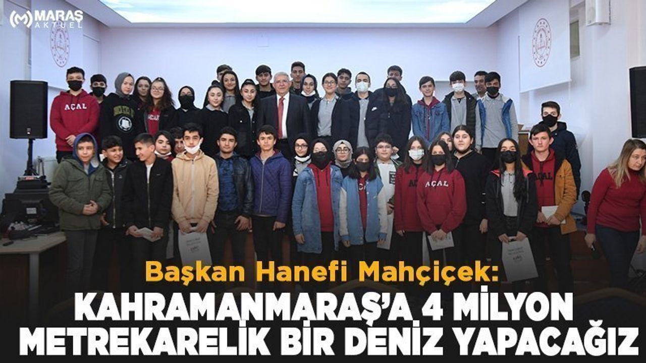 Su Tutucu Sedde Aksı Projesi ile Kahramanmaraş’a 4 milyon metrekarelik bir deniz kazandıracaklarını da anlatan Mahçiçek, “Kılavuzlu Köprüsü’nün alt tarafında yazın sular çekildiğinde bir çevre felaketi yaşanıyordu. Ama kışın burası sularla dolar, deniz olurdu. Şimdi bu çevre felaketini önleyeceğiz. Bu alanla ilgili çok güzel bir projemiz var. Ceyhan Nehri’nin en dar kısmına Su Tutucu Sedde Aksı yapacağız suyu tutmak için. 434 kodunda suyu burada tutacağız. Önce kirliliği temizleyeceğiz. Suyu burada tuttuğumuz zaman 4 milyon metrekarelik bir deniz olacak. Sonra bu denizin etrafına çok katlı olmayan yerleşim alanları yapacağız. Bir marinamız olacak, tekneler park edebilecek ve tekne gezileri yapılacak. Çevresinde rekreasyon alanları olacak, piknik alanları, oturma grupları yer alacak. Yürüyüş ve bisiklet yolları da olacak. Suyun üzerinde su sporları aktiviteleri de yapılacak. Projemiz tamam, her şey hazır İnşallah Kahramanmaraş’a deniz getireceğiz. Bizim öngörümüze göre 150 bin insanımızın yaşayacağı yeni bir şehir inşa edeceğiz” ifadelerini kullandı.