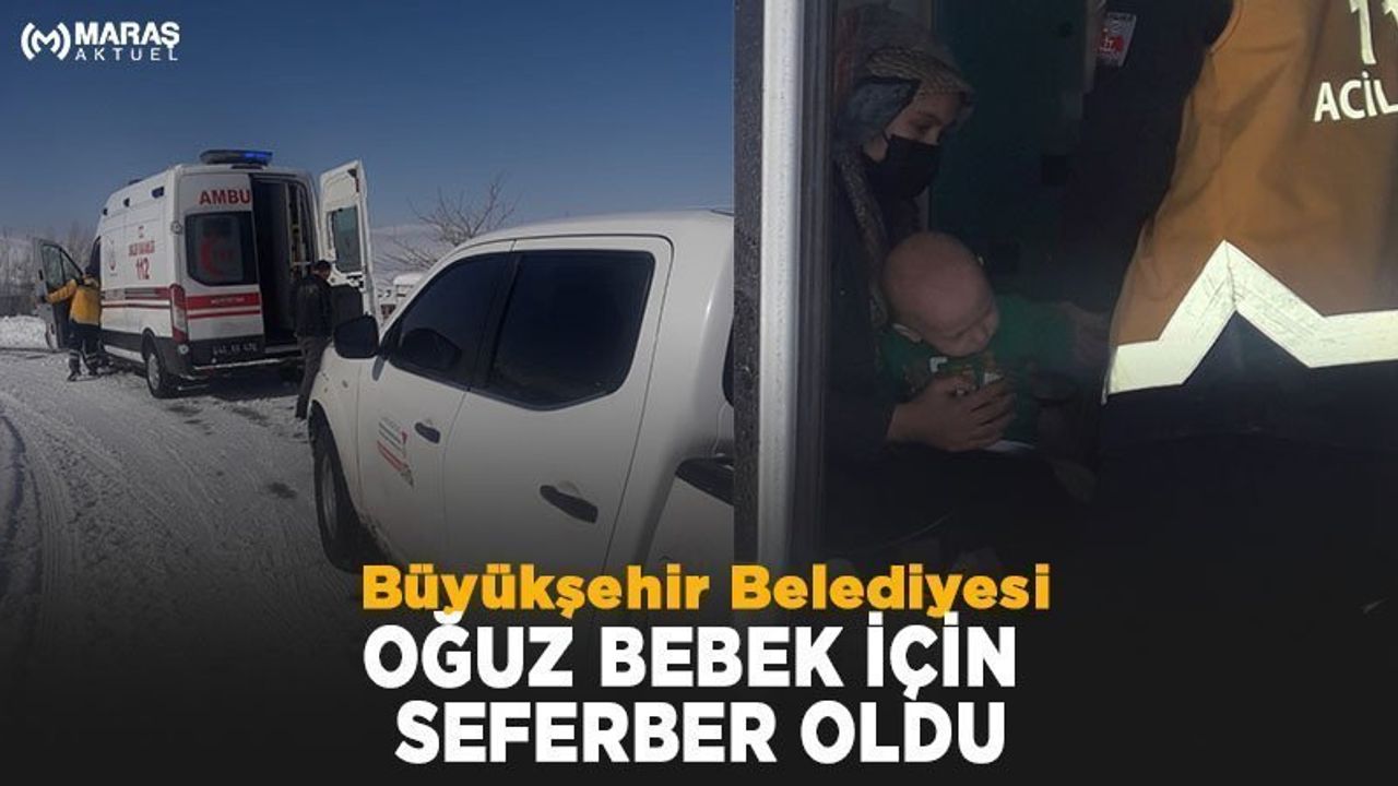 Kahramanmaraş Büyükşehir Belediyesi’ne bağlı karla mücadele ekipleri Göksun ilçesinin Karadut Mahallesi’nde hasta bir bebeğin mahsur kaldığı ihbarı üzerine harekete geçti. İlçe merkezine yaklaşık 50 kilometre uzaklıkta bulunan Kömolar Mevkii’nde ikamet eden Kayık çifti bebeklerinin ateşinin yükselmesinin ardından 112 Acil Çağrı Merkezi’ne bilgi verdi. Yoğun kar yağışına maruz kalan bölgeye sağlık ekiplerinin intikal edebilmesi için bölgeye çok sayıda Büyükşehir Belediyesi ekibi ve iş makinesi sevk edildi. Kırsal yolun açılması için yoğun çalışma gerçekleştiren ekipler, bebeği bulunduğu yerden kurtararak sağlık ekiplerine teslim etti. Elbistan Devlet Hastanesi’ne sevk edilen Oğuz bebeğin sağlık durumunun iyi olduğu öğrenildi.