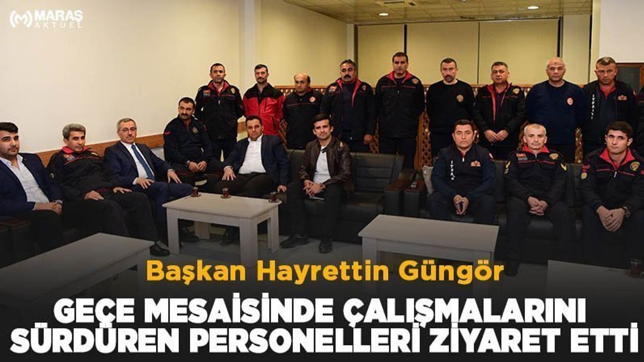 Kahramanmaraş Büyükşehir Belediye Başkanı Hayrettin Güngör, gece mesaisinde çalışmalarını sürdüren personelleri ziyaret etti. İlk olarak Küçük Sanayi Sitesi’nde asfaltlama çalışmaları devam eden Mehmet Nuri Arıkan Caddesi’nde Fen İşleri Dairesi Başkanlığı ekipleriyle bir araya gelen Başkan Güngör, buradan İtfaiye Daire Başkanlığı’na hareket etti. Ardından Halk Ekmek fırınını ziyaret eden Başkan Güngör, personellere ikramda bulunarak sohbet etti. Ziyareti sonrası açıklamada bulunan Büyükşehir Belediye Başkanı Hayrettin Güngör, “Günün sonunda il başkan yardımcımız ve gençlik meclisi üyelerimizle İtfaiye Daire Başkanlığı’mızı ve Halk Ekmek Fabrikamızı ziyaret ettik. Kahramanmaraş’ımıza hizmet yolunda tüm birimlerimizle gece gündüz emek sarf ediyoruz. Milletimizin emrindeyiz. Tüm çalışma arkadaşlarıma vazifelerinde kolaylıklar diliyorum” diye konuştu.