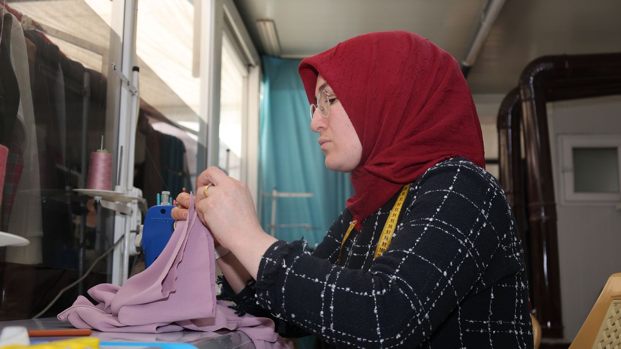 Depremzede esnafa yönelik KOSGEB'in hibe desteğine başvuran Dernek, aldığı 3 makine desteğiyle işlerini büyüttü. Elbise ile gömlek gibi kıyafetleri diken Dernek, bir yandan hayata tutunurken diğer yandan ise istihdam ettiği 2 kadına ekonomik katkı sağladı.