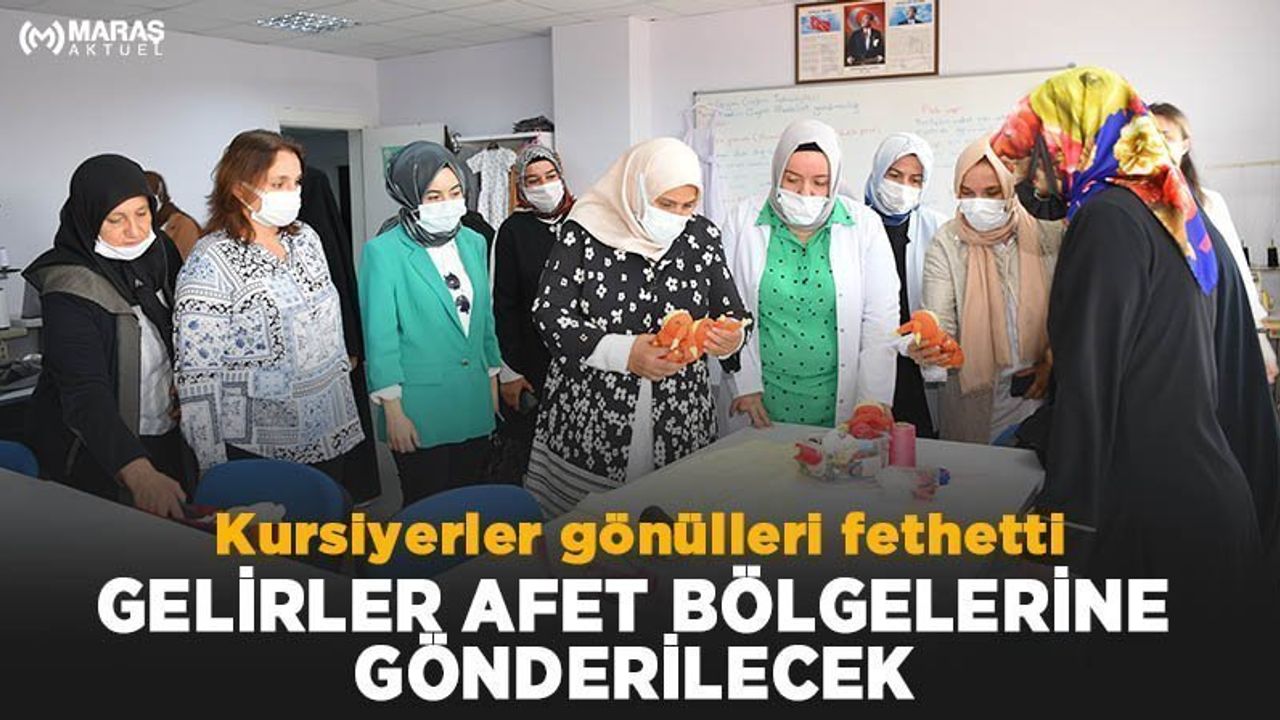Son günlerde doğal afetlerle mücadele eden bölgelere dikkat çeken bayan kursiyerler, ortaya koydukları tekstil ürünlerini afet bölgelerine gönderdi.