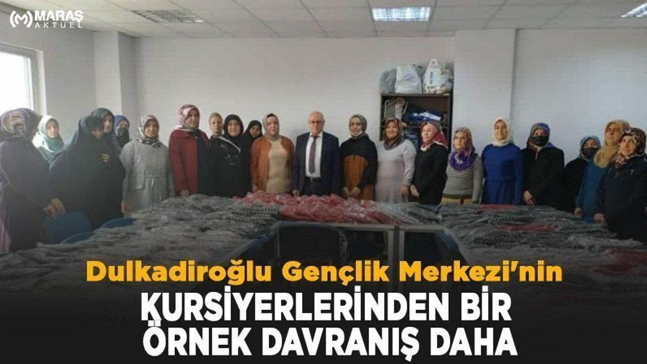Dulkadiroğlu Gençlik Merkezi, ortaya koyduğu kurs ve projelerle Kahramanmaraş’a örnek olmaya devam ediyor. Daha önce deprem ve sel mağdurlarına yönelik çalışma yapan Dulkadiroğlu Gençlik Merkezi Giyim Kursu öğrencileri, bu defa da yaşlılar için kolları sıvadı.Yaşlılar haftası dolayısıyla çalışma yapan Dulkadiroğlu Gençlik Merkezi öğrencileri, yaşlılara pijama dikerek Aile ve Sosyal Politikalar İl Müdürlüğü’ne teslim etti. Kurs Eğitmeni Sevim Çıkrıkcı’nın liderliğinde gerçekleştirilen sosyal sorumluluk faaliyetine kursiyerler de büyük ilgi gösterdi.