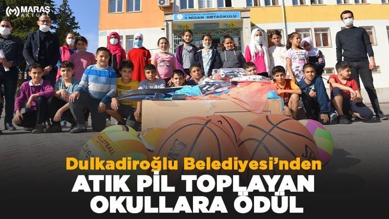 Sıfır Atık Projesi kapsamında ilçede bir çok çevre projesine imza atan Dulkadiroğlu Belediyesi, Taşınabilir Pil Üreticileri ve İthalatçıları Derneği iş birliğiyle atık pil toplayan okulları ödüllendirdi. Her yıl gerçekleştirilen ödül dağıtım programı, pandemi dolayısıyla 2020 yılında ertelenmişti. Geçtiğimiz yılın hediyelerini dağıtan Dulkadiroğlu Belediyesi ekipleri, bu yıl Kahramanmaraş’ta rekor düzeyde pil toplayan Dulkadiroğlu İlkokulu oldu. Yine yoğun bir şekilde pil toplayan 5 Nisan Ortaokulu’da spor malzemeleriyle ödüllendirildi.