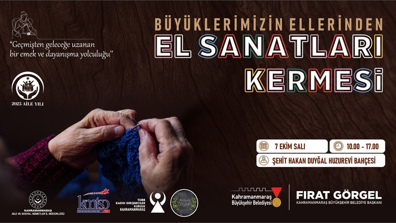 Kahramanmaraş Büyükşehir Belediyesi, sosyal belediyecilik çerçevesinde toplumun her kesimine yönelik etkinlik ve faaliyetlerini artırarak sürdürüyor. 2025 Aile Yılı kapsamında şehirde anlamlı bir çalışmaya daha imza atılıyor. Büyükşehir Belediyesi koordinasyonunda; Aile ve Sosyal Hizmetler İl Müdürlüğü, Kahramanmaraş Ticaret ve Sanayi Odası, TOBB Kadın Girişimciler Kuruluşu ve Atölye Zeytin iş birliğiyle el sanatları kermesi düzenlenecek. 7 Ekim Salı günü Şehit Hakan Duyğal Huzurevi bahçesinde gerçekleştirilecek etkinlik, saat 10.00’da başlayıp 17.00’a kadar devam edecek. Programda huzurevinde yaşamını sürdüren şehrin ulu çınarlarının el emeği göz nuru ürünleri vatandaşlarla buluşturulacak. Katılımcılar, geçmişten geleceğe uzanan bir emek ve dayanışma yolculuğuna tanıklık edecek. Büyükşehir Belediyesinden yapılan açıklamada, el sanatları kermesinin toplumsal dayanışmayı güçlendirmesi ve geleneksel el işçiliğini yaşatması bakımından özel bir önem taşıdığı belirtildi. Açıklamada ayrıca, “Şehrimizin değerli büyüklerinin el emeği ürünlerinin sergileneceği bu özel programa tüm hemşehrilerimiz davetlidir” ifadelerine yer verildi.