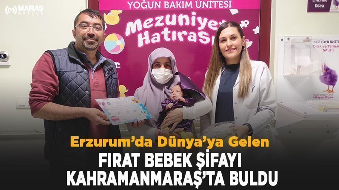 Erzurum’da dünyaya gelen ve ROP hastası Fırat Bebek, Sağlık Bakanlığına ait ambulans uçakla KSÜ Tıp Fakültesi Hastanesine sevk edildi.Erzurum’da Dünyaya Gelen Fırat Özer Bebeğin doğumdan sonra yapılan kontrollerinde Prematüre Bebeklerde görülen, retina hasarı yapan ve körlükle sonuçlanabilen bir göz hastalığı olduğu anlaşıldı. Yapılan kontrollerinde ardından ambulans uçakla KSÜ Tıp Fakültesi Hastanesi ROP Tanı ve Tedavi Merkezinde tedavi altına alındı.Yeni Doğan Yoğun Bakım Ünitesindeki 17 günlük başarılı tedavinin ardından Fırat Özer bebeğe mezuniyet kıyafetleri giydirilerek taburcu edildi.