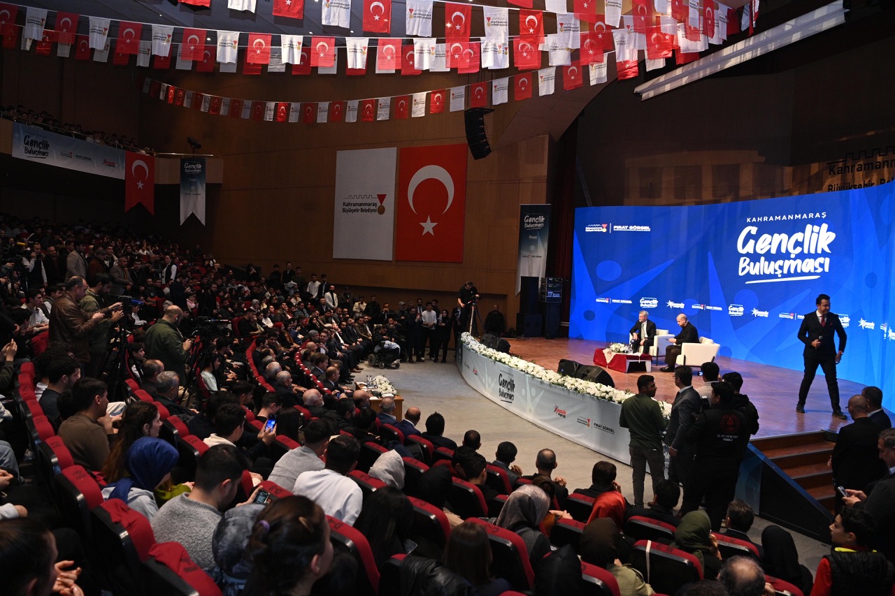 Gençlerin yoğun katılımıyla gerçekleşen programda salon tamamen dolarken, etkinlik boyunca renkli ve samimi görüntüler oluştu. Saygı duruşu ve İstiklal Marşı’nın okunmasıyla başlayan programda, Büyükşehir Belediye Başkanı Fırat Görgel ile Necmeddin Bilal Erdoğan, gençlerle bir araya gelerek sohbet etti, katılımcıların yönelttiği soruları içtenlikle yanıtladı.