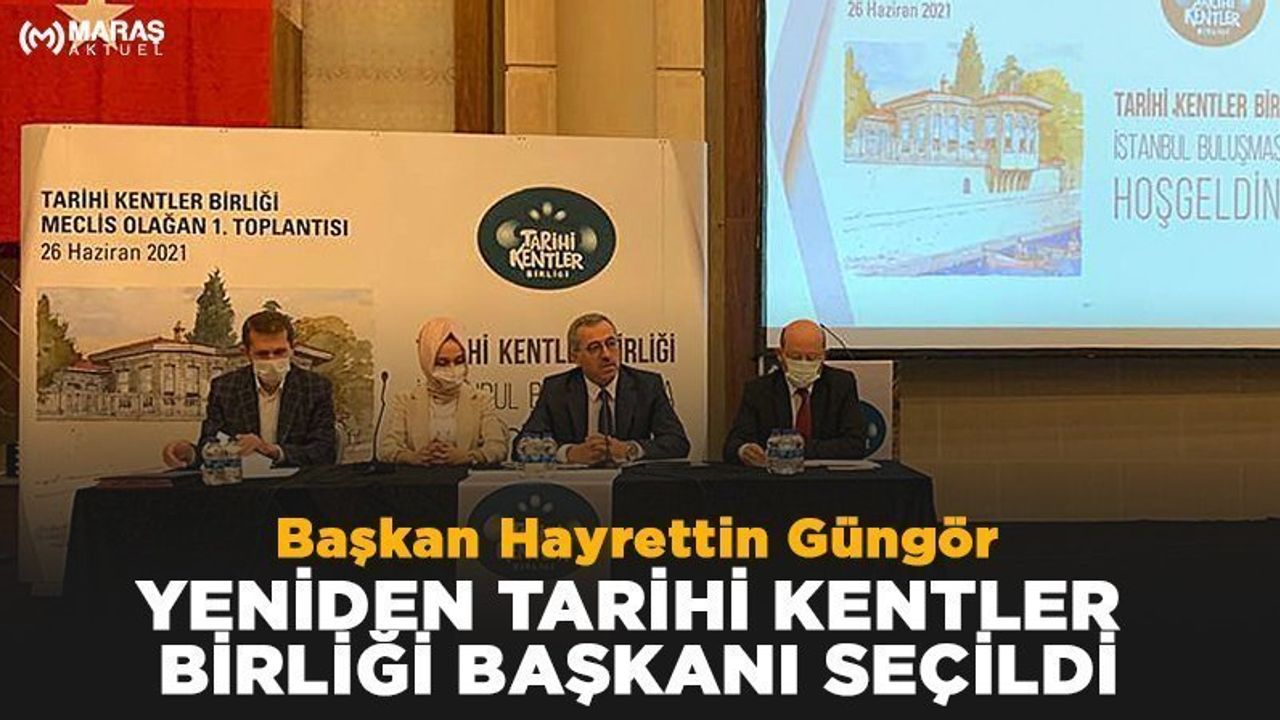 Kahramanmaraş Büyükşehir Belediye Başkanı Hayrettin Güngör, Tarihi Kentler Birliği 2021 yılı Meclis Olağan 1. Toplantısına katıldı. İstanbul Pendik'te düzenlenen toplantı belediye başkanları ve meclis üyelerinin katılımıyla gerçekleştirildi. Tarihi kentler ve müzelerin öneminin vurgulandığı toplantıda ayrıca başkanlık seçimi de yapıldı. Düzenlenen seçimde üst üste ikinci kez başkan seçilen Büyükşehir Belediye Başkanı Hayrettin Güngör, “Tarihi Kentler Birliği Mayıs Olağan Genel Kurulu'nu yaptık. Bu görevi yeniden 3 yıllığına üstlendik. Tarihi Kentler Birliği önemli bir aile. Çünkü her şehrimizin kendine özgü tarihi ve kültürel mirası var. Bunları korumak, yaşatmak ve gelecek nesillere aktarmak için gayretle çalışıyoruz" ifadelerini kullandı.