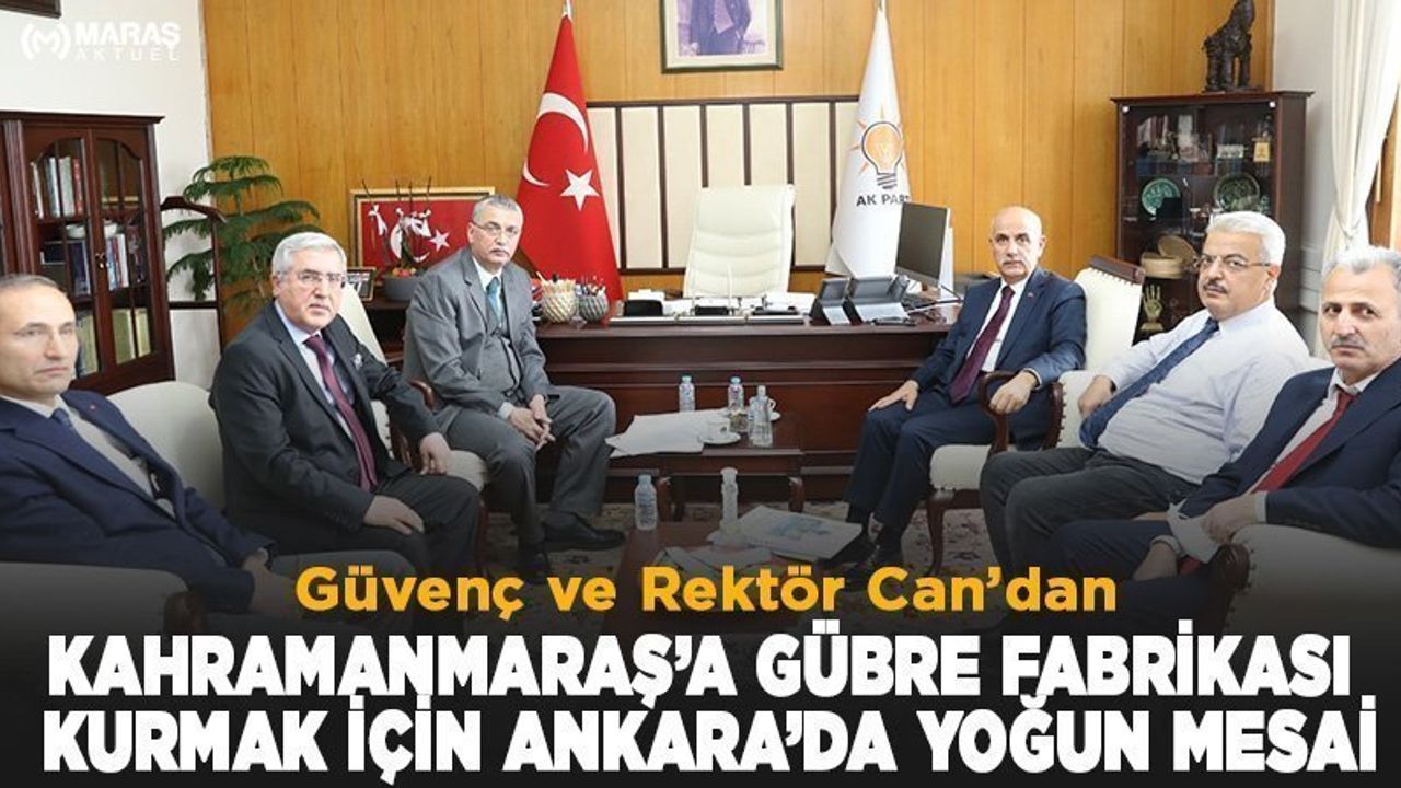 Kahramanmaraş’a kurulacak Gübre Fabrikası ile kömür havzasının potansiyelinin maksimum seviyeye çıkarılması adına çalışma yapan Kahramanmaraş Sütçü İmam Üniversitesi Rektörü Niyazi Can ve Rektör Yardımcısı Kadir Saltalı, projelerini ilk olarak TBMM İçişleri Komisyonu Başkanı ve AK Parti Kahramanmaraş Milletvekili Celalettin Güvenç’e iletti. Projeyle ilgili bilgi alan Güvenç, hızlı şekilde randevu alarak Rektör Can ve Saltalı ile birlikte Tarım ve Orman Bakanı Vahit Kirişçi’ye bir ziyaret gerçekleştirdi. Kahramanmaraş’a kurulmasını hedefledikleri Gübre Fabrikası’nın bütün detaylarını ve tarım toprakları için projenin önemini Bakan Kirişçi’ye anlatan Güvenç, destek sözü aldı. Bakan Kirişçi, çalışmaların hızlandırılması amacıyla Güvenç ve Can ile Saltalı’yı, Tarım Kredi Kooperatifi Genel Müdürü Hüseyin Aydın’a yönlendirdi. Aydın’ı makamında ziyaret eden Güvenç, Can ve Saltalı, projenin teknik raporlarını ve verilerini detaylı şekilde aktardı.