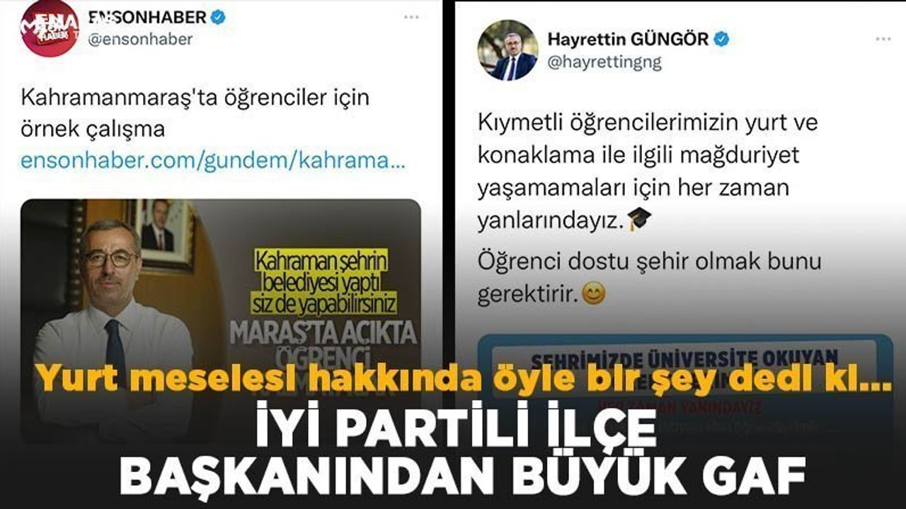 İyi Parti Onikişubat İlçe Başkanı Murat Kılıç, Büyükşehir Belediye Başkanının paylaşımından iki gün sonra, 25 Eylül Cumartesi günü bir açıklama yaparak, “Onikişubat belediyesine ait Şekerdere yolu üzerindeki bildiğim kadarıyla şuan kullanılmayan binayı ivedi bir şekilde yurda çevirip dışarıdan gelen öğrencilerin ihtiyaçları için kullanıma açması gereklidir.” ifadelerini kullandı. Oysa ki Büyükşehir Belediye Başkanı Hayrettin Güngör’ün paylaşımıyla birlikte şehirde konaklama ihtiyacı olan öğrencilerin başvuruları alınmış, konaklama imkanı sunulmaya başlanmıştı. İyi Parti ilçe başkanının öğrencilere konaklama imkanı sağlanıyorken hiçbir çalışma yapılmıyormuş gibi iktidara seslenmesi, “Onlar konuşur, AK Parti yapar” sloganını tekrar akıllara getirdi.