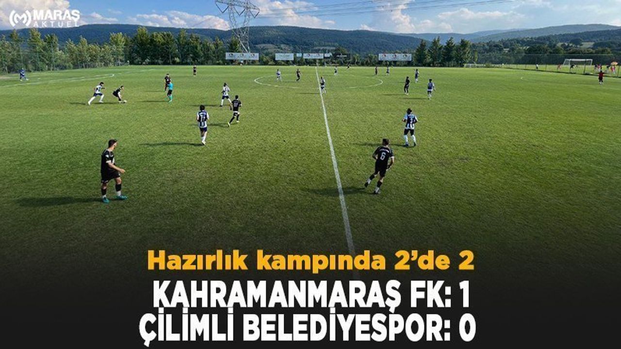 Bölgesel Amatör Lig Kahramanmaraş FK’nın ikinci etap kamp çalışması Bolu’da devam ediyor. 2 Eylül’e kadar kampta güç depolayacak olan Kahramanmaraş FK, bu zamanı hazırlık maçları ile de değerlendiriyor. İlk hazırlık maçında Küçükçekmece’yi 1-0 mağlup eden aslanlar ikinci hazırlık maçında ise Düzce temsilcisi Çilimli Belediyespor’u 1-0 mağlup etmeyi başardı. Kahramanmaraş FK’ya galibiyeti getiren golü ise Tolga Şahin’den geldi.