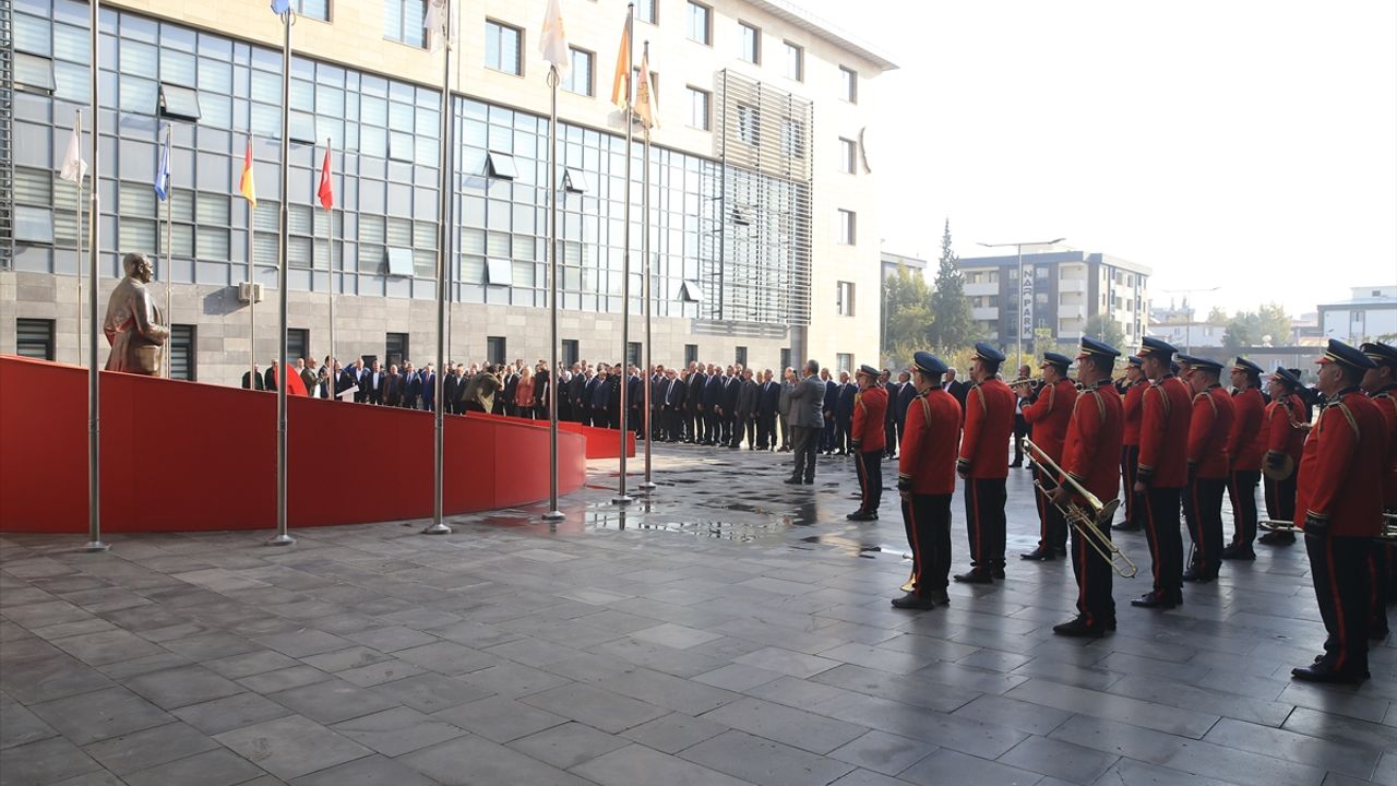 Kahramanmaraş İl Emniyet Müdürlüğü bahçesindeki Atatürk Anıtı'na çelenk sunulmasıyla başlayan tören, saygı duruşunda bulunulması ve İstiklal Marşı'nın okunmasıyla devam etti.