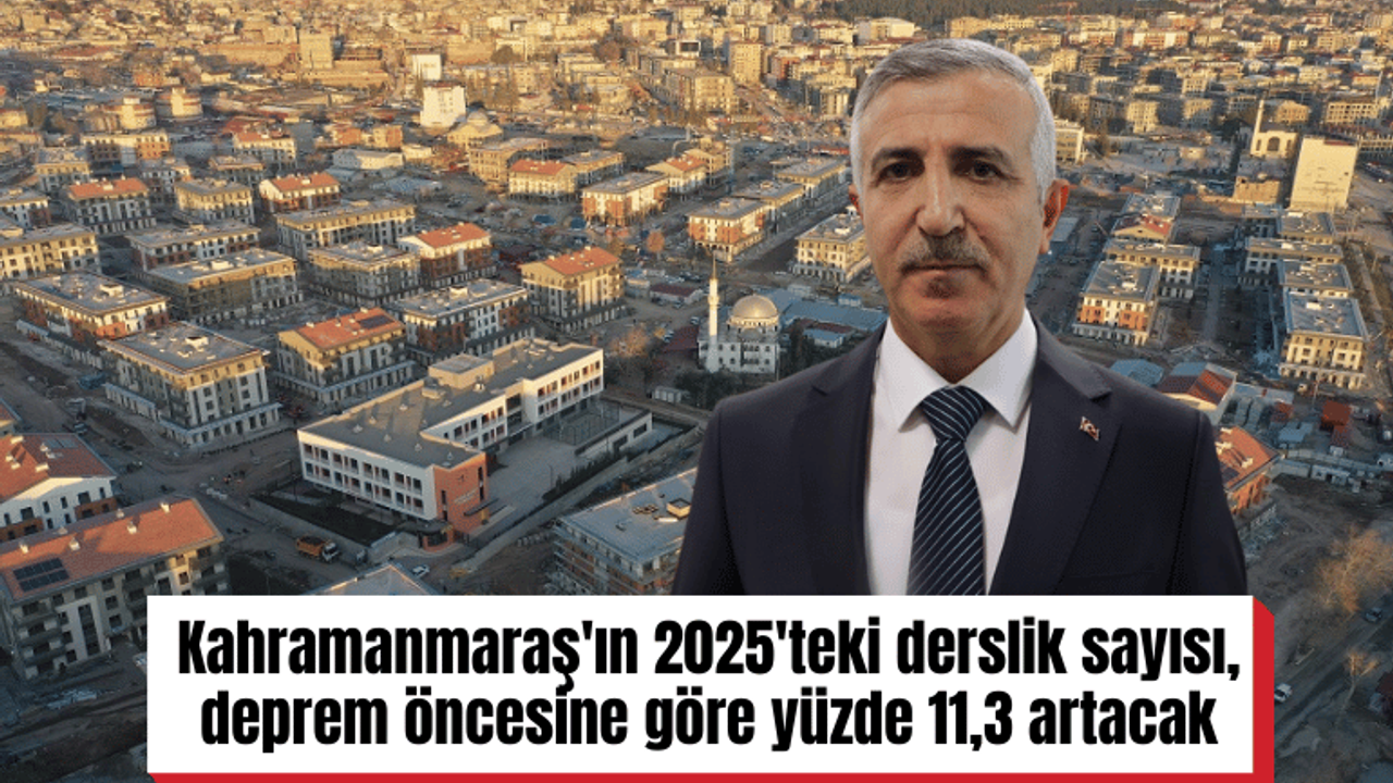Kahramanmaraş'ta 6 Şubat 2023'teki depremlerin ardından yatırım programına alınan 70 okulun bu yıl tamamlanmasıyla kentteki derslik sayısı, deprem öncesine göre yüzde 11,3 artarak 11 bin 541'e yükselecek.