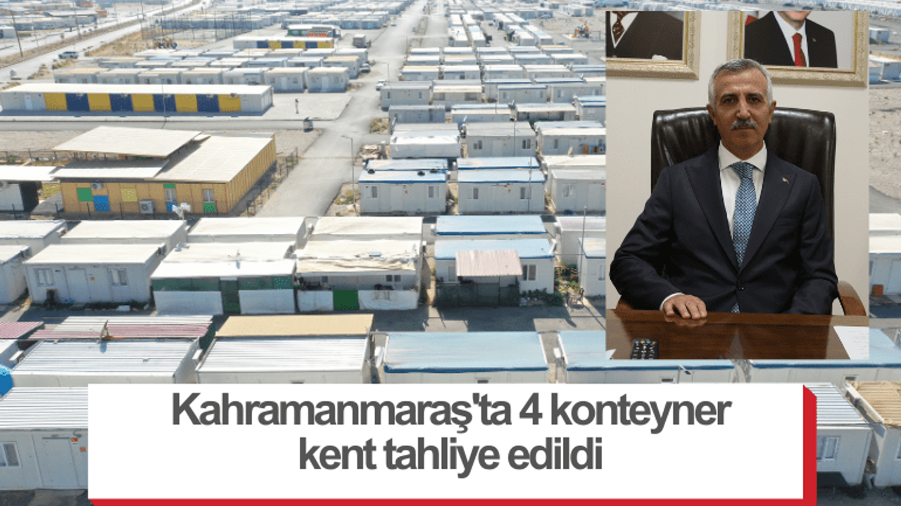"4 konteyner kentimizin faaliyetine son verdik" Kahramanmaraş Valisi Mükerrem Ünlüer, AA muhabirine, kalıcı konutların tamamlanmasıyla şu ana kadar konteyner kentlerde kalan 1850 ailenin kalıcı konutlarına taşındığını söyledi.Depremlerin ardından kent genelinde 55 konteyner kent kurulduğunu hatırlatan Ünlüer, "Kalıcı konutlarımızın teslimiyle birlikte konteyner kentlerimizde de kalan sayısı azalmaya başladı. Yoğunluğu azalan küçük konteyner kentlerimizdeki depremzede vatandaşlarımızı tek yerde toplama çalışması kapsamında büyük konteyner kentlerimize transfer ediyoruz. Şu ana kadar 4 konteyner kentimizin faaliyetine son verdik ve depremzede vatandaşlarımızın transferini sağladık. Yıl sonuna kadar bu transfer çalışmasını sürdüreceğiz." dedi.