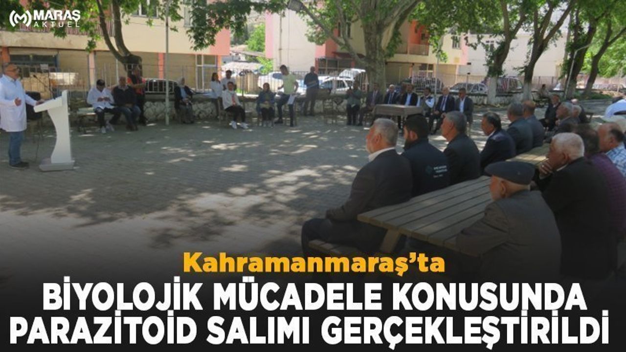 Bu amaçla Pazarcık İlçesine bağlı Evri-Taşbiçme Mahallesinde İl Tarım ve Orman Müdürü Ramazan Bilir, Bitkisel Üretim ve Bitki Sağlığı Şube Müdürü İbrahim Kargı, Pazarcık İlçe Tarım ve Orman Müdürü Cemal Karasakal, Adana Biyolojik Mücadele Enstitüsü Müdürlüğü teknik personelleri Vahdettin Akmeşe ve Ahmet Doğru, Bitkisel Üretim ve Bitki Sağlığı Şube Müdürlüğü teknik personelleri, Evri-Taşbiçme Mahallesi Muhtarı Adem Akpolat ve çiftçilerin katılımıyla eğitim toplantısı ve akabinde arazide süne parazitoid salımı gerçekleştirildi.Kahramanmaraş İl Tarım ve Orman Müdürlüğü tarafından konu ile ilgili olarak yapılan açıklamada; “Doğada var olan süne yumurta parazitoidleri kendi yumurtasını süne yumurtaları içine bırakarak sünenin populasyonunu azaltmada önemli bir katkı sağlamaktadır. Bunların yetersiz olduğu zamanlarda süne populasyonu artmakta, bu da buğdaya büyük zararlar vermektedir. Bu amaçla süne parazitoidi yani faydalı böcek üretimi için 12.000 adet kışlamış ergin süne İl Müdürlüğümüz teknik ekipleri tarafından buğday alanlarından toplanmıştır. Bu süneler Adana Biyolojik Mücadele Araştırma Enstitüsü Laboratuvarlarına süne parazitoidi üretim amacıyla gönderilmiş olup, üretilen 90.000 adet süne yumurta parazitoidinin doğaya salımı çiftçiler tarafından yapılmış ve bu şekilde süneye karşı mücadeleye katkı sağlanmış olacaktır. Süne Mücadelesi Yönetimli Çiftçi Mücadelesi şeklinde yapılmakta olup, İl Müdürlüğümüz teknik personelleri tarafından 1.417.137 da buğday ekim alanının 400.000 da’lık kısmında süne survey çalışmaları yapılmaktadır. Süne survey çalışmaları Afşin, Dulkadiroğlu, Elbistan, Ekinözü, Pazarcık ve Türkoğlu ilçelerinde 9 ekip şefi ve toplam 29 teknik personelle yürütülmektedir. Şubat-Ağustos ayları arasında gerek kışlaklarda, gerekse buğday ekim alanlarında tarla kontrolleri yapılarak mücadeleye gerek duyulan alanlar muhtarlar vasıtasıyla çiftçilere bildirilmektedir.” ifadelerine yer verildi.