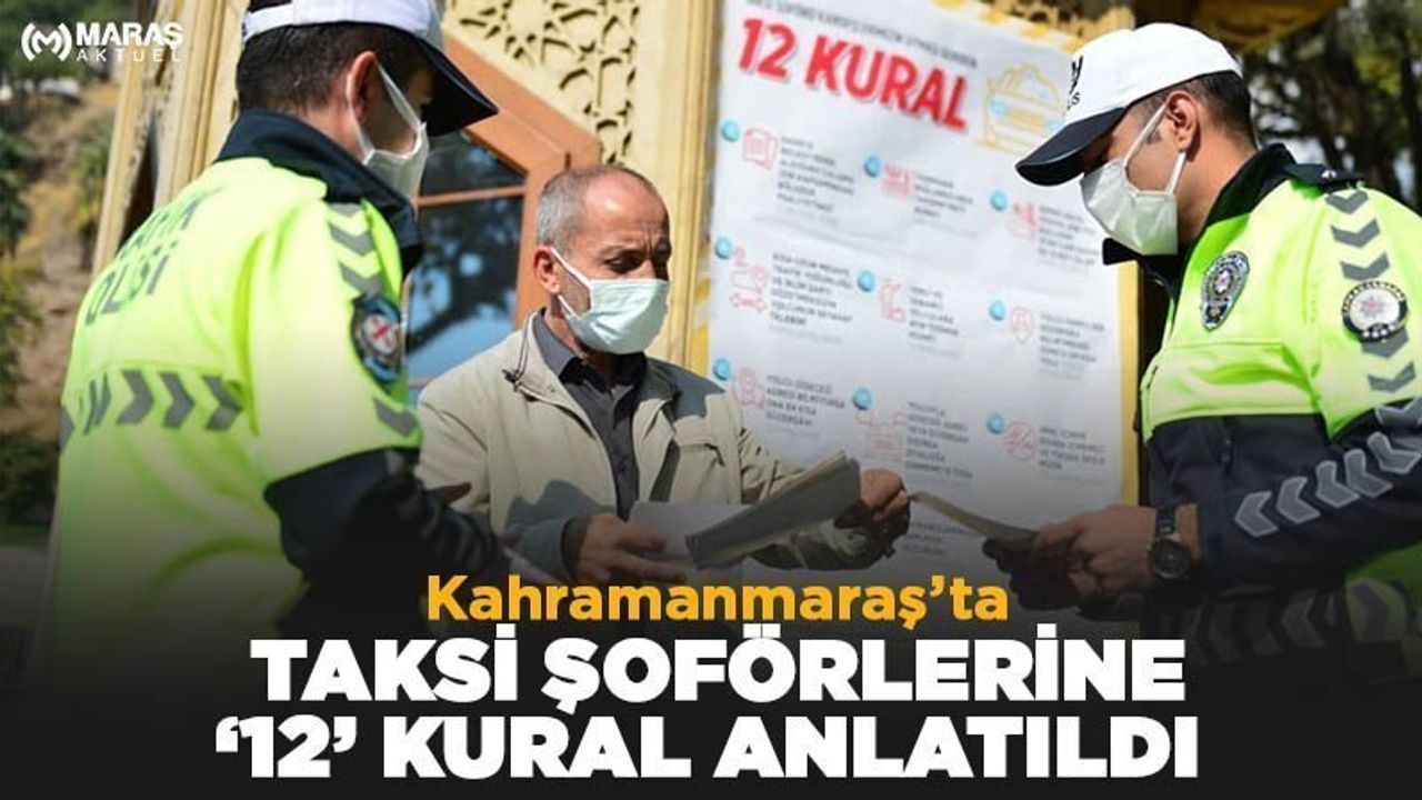 İçişleri Bakanlığınca, son dönemde yaşanan sıkıntılar nedeniyle taksi şoförlerinin uyması gereken 12 kuralın yazılı olduğu bir görsel hazırlandı. Kahramanmaraş İl Emniyet Müdürlüğü Trafik Tescil ve Denetleme Şube Müdürlüğü’ne bağlı ekipler, taksi esnafı ile bir araya gelerek duraklara 12 kuralı gösteren billboardlar asıldı ve taksicilere afiş dağıtıldı.