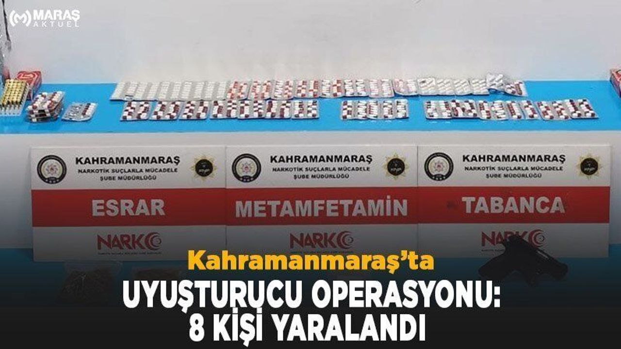 Edinilen bilgiye göre, Narkotik Suçlarla Mücadele Şube Müdürlüğü görevlilerince sokak satıcılarına yönelik yürütülen operasyonda; E.Y., E.G., H.K., İ.A., D.D., E.D., H.M.K. ve S.P. yakalandı. Kahramanmaraş Cumhuriyet Başsavcılığı koordinesinde gerçekleştirilen operasyonda şüphelilerin ikamet ve iş yerlerinde yüklü miktarda sentetik ecza, çeşitli miktarlarda farklı uyuşturucu maddeler, ruhsatsız; 1 adet tabanca, 1 adet av tüfeği ile birlikte çok sayıda fişek, 1 adet hassas terazi ve 10 adet tarihi eser olduğu değerlendirilen sikke ele geçirildi. Şüpheliler, emniyetteki işlemlerinin ardından adliyeye sevk edilecek.