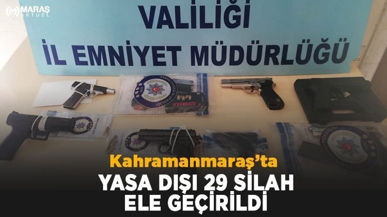 Alınan bilgilere göre, İl Emniyet Müdürlüğüne bağlı polis ekipleri, son iki hafta içinde yapılan çalışmalarda, havaya ateş ederken suçüstü yakalanan 4 kişi, sokak üzerinde silah taşırken 15 kişi suçüstü, ikametinde, aracında ve işyerinde silah ele geçirilen 6 kişi yakalandı. Toplamda 1 adet ruhsatlı tabanca, 6 adet ruhsatsız tabanca, 4 adet ruhsatsız pompalı tüfek, 4 adet ruhsatsız av tüfeği, 14 adet kurusıkı tabanca olmak üzere toplam 29 adet silah ve çok sayıda mermi ele geçirildi.
