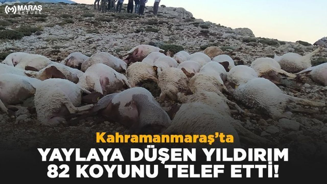 Onikişubat İlçesi Ilıca Mahallesi Atlık Yaylasında Cuma Uzun’a ait 114 adet koyun sürüsünün üzerine yıldırım düştü. Peş peşe düşen yıldırımlar sonucu 82 koyun telef oldu.