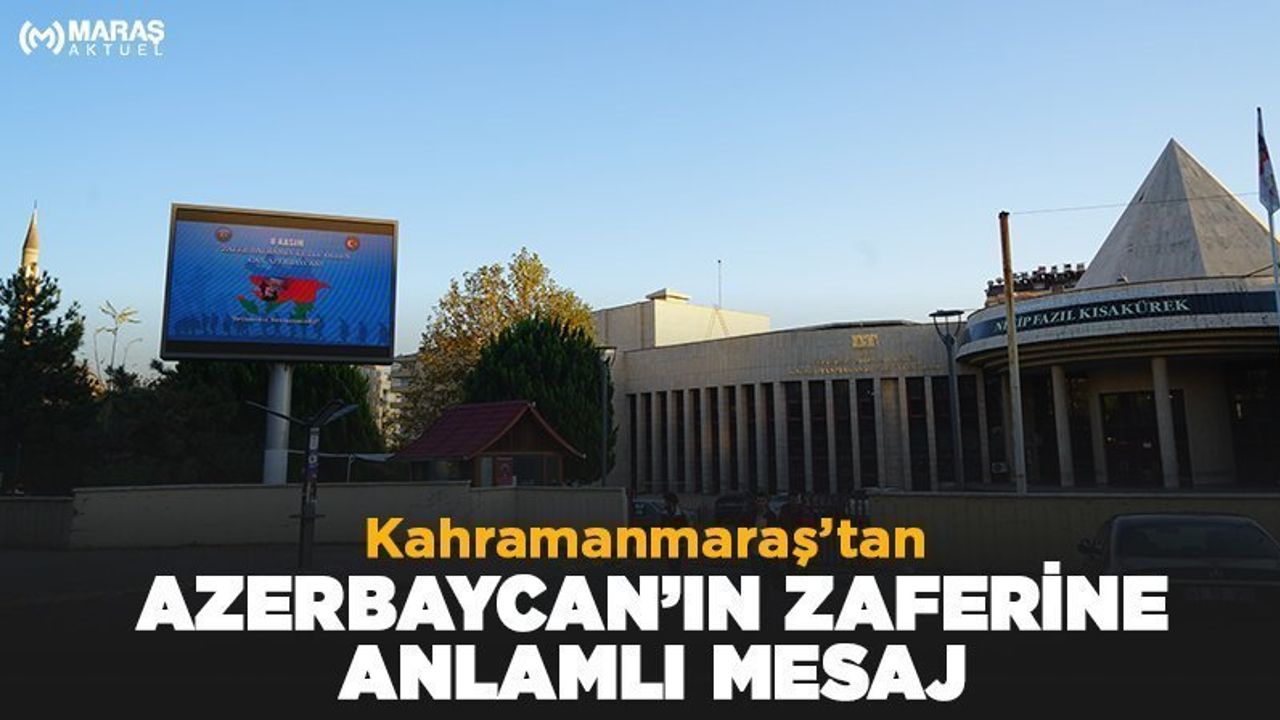 Kahramanmaraş Büyükşehir Belediyesi, Azerbaycan’ın Karabağ Zaferi’nin yıldönümünde şehri mavi, kırmızı ve yeşil renklere bürüdü. Kentteki tüm dijital panolardan paylaşılan mesajda, “Zafer bayramın kutlu olsun Can Azerbaycan” ifadeleri yer aldı. Geçtiğimiz yıl 44 gün süren vatan muharebesi gerçekleştiren ve 8 Kasım'da kültür başkenti Şuşa'yı kurtaran Azerbaycan’a bir tebrik de Kahramanmaraş Büyükşehir Belediye Başkanı Hayrettin Güngör’den geldi. Sosyal medyadan yaptığı paylaşımda Başkan Güngör, “Selam olsun Türk’ün Bayrağına, Selam olsun Karabağ’a, Şuşa’ya… Can Azerbaycan’ın Karabağ Zaferi’nin 1. yıldönümü kutlu olsun. Tek millet iki devlet” ifadelerini kullandı.