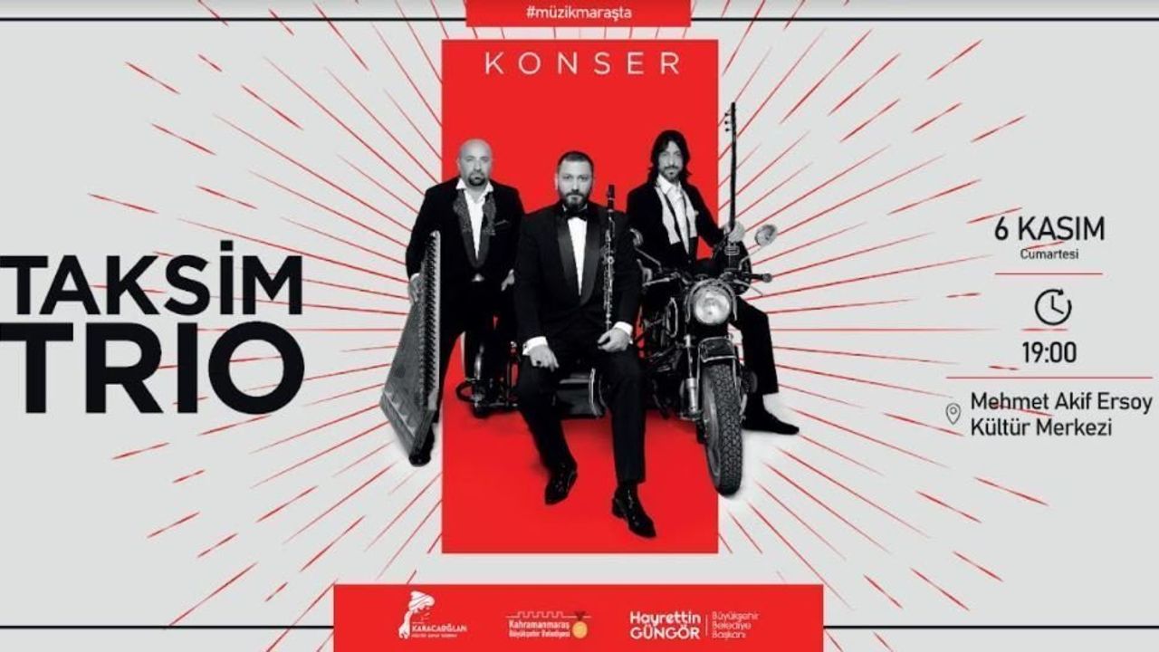 Kahramanmaraş Büyükşehir Belediyesi tarafından düzenlenen “Karacaoğlan Kültür Sanat Sezonu Kasım Etkinlikleri” ilk programıyla başlıyor. Toplamda bir ay boyunca konser, söyleşi, tiyatro ve atölyelere kadar birçok etkinliğin düzenleneceği programlar “Taksim Trio” konseriyle start alacak. 6 Kasım Cumartesi günü saat 19.00’da Mehmet Akif Ersoy Kültür Merkezi’nde gerçekleştirilecek konserde, ünlü müzisyenler Hüsnü Şenlendirici, Aytaç Doğan ve İsmail Tunçbilek sanatseverleri Türk müziğinin eşsiz besteleriyle buluşturacak. Kültür Spor ve Turizm Dairesi Başkanlığı’ndan yapılan açıklamada, düzenlenecek konsere tüm vatandaşların davet edildiği ifade edildi.