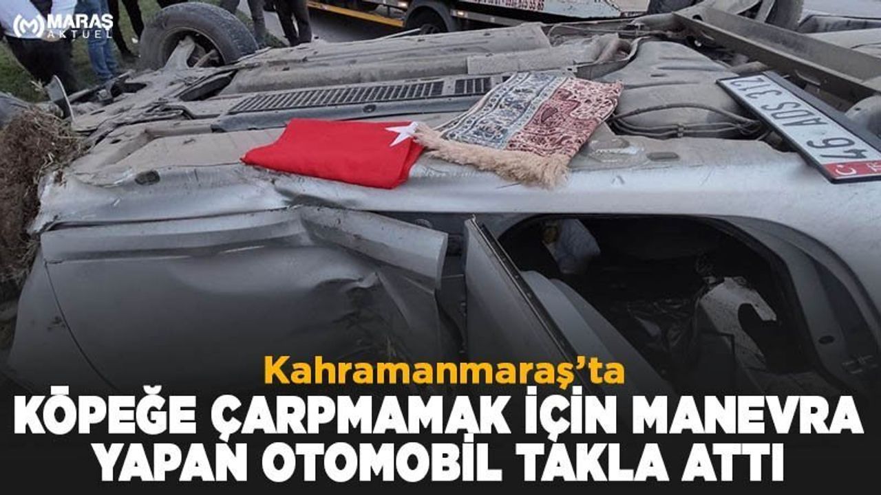Edinilen bilgiye göre, Onikişubat İlçesi Şazibey Mahallesi Batı Çevre D825 karayolu üzerinde ismi öğrenilemeyen sürücü, yönetimindeki 46 ADS 312 plakalı otomobiliyle seyir halinde iken yola fırlayan köpeğe çarpmamak için yaptığı manevra sonucu direksiyon hakimiyetini kaybederek takla attı. Kazada hurdaya dönen otomobilden sürücü hafif yaralı kurtuldu. Yaralı sürücü ihbar üzerine olay yerine gelen sağlık ekipleri tarafından hastaneye kaldırılırken, kaza nedeniyle kontrollü sağlanan trafik hurdaya dönen otomobilin çekiciyle kaldırılmasıyla normale döndü.