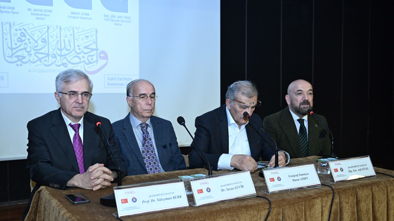 Prof. Dr. Süleyman Berk, hüsn-i hattın tanımı, tarihsel arka planı ve Filistin bölgesinden başlayıp Nebatiler üzerinden gelişen Arap alfabesinin Osmanlı döneminde kazandığı ivme üzerine kapsamlı bir değerlendirme yaptı. Hat sanatının temel malzemeleri olan kalem, kâğıt ve mürekkebin özel tekniklerle hazırlandığını aktararak, Osmanlı’da altı padişahın hatla ciddi şekilde meşgul olduğunu hatırlattı.