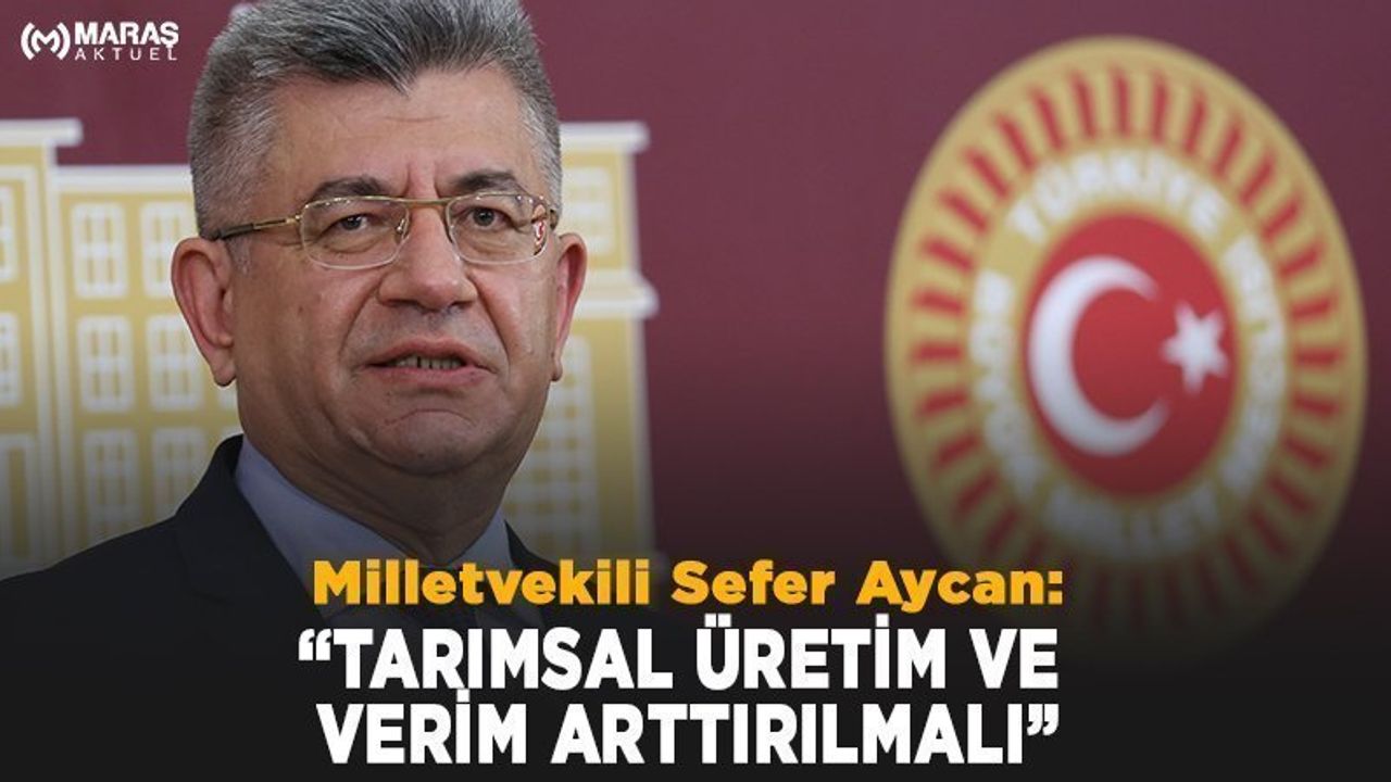 Milletvekili Aycan, konuşmasında şunları dile getirdi: "Tarımsal üretimi ve tarımsal verimi artırmalıyız. Bu konuna her arazi mutlaka ekilmeli ve tarımsal verimi artırmalıyız. En önemli faktör gübre kullanımı ve tarlaların sulanmasıdır. Bu konuda çiftçilerimizin talepleri vardır; gübre ve ilaç konusunda desteklemelerin artmasını istemektedirler, kapalı sistem sulamanın yaygınlaşmasını ve modern sulama sistemi kurulması için desteklerin artmasını istemektedirler, sulama suyu ücreti konusunda destek beklemektedirler, sulama suyu borçlarının ve elektrik borçlarının hasat sonrası mahsup edilmesi istenmektedir ve elektriklerinin bu dönemde kesilmemesi istenmektedir. Ayrıca, bilimsel tarım ve verimlilik için mutlaka toprak analizi yapılmasına ve bilimsel danışmanlığa ihtiyaç vardır. Bu nedenle Tarım Bakanlığının daha fazla ziraat mühendisi istihdam etmesi, çiftçiye ilaç ve gübre kullanımı konusunda doğru yönlendirmesi yapması faydalı olacaktır."