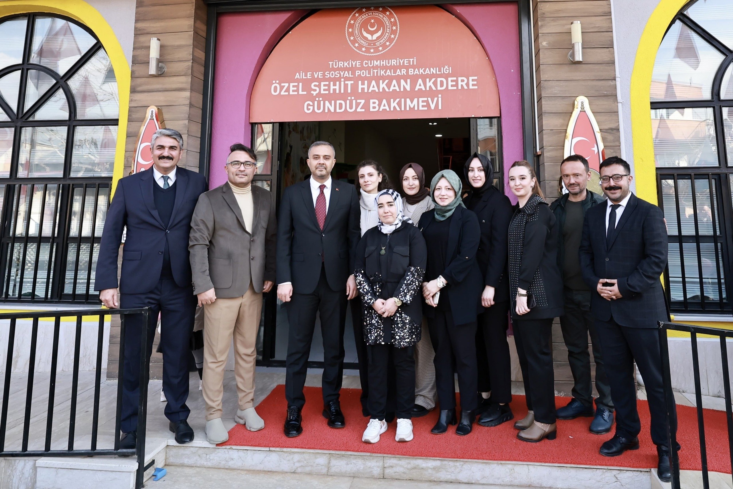 Bugünün özel bir anlamı da var. Zekai Ablamız ve Hüseyin Amcamız, Şehit Hakan Akdere'nin anne ve babası, bugün burada bizimle birlikte. Bakımevimizde şehidimizin anısına bir Şehitlik Köşesi oluşturduk. 2016 yılında şehit düşen Hakan Akdere kardeşimize ve tüm şehitlerimize Allah'tan rahmet diliyor, mekanlarının cennet olmasını temenni ediyorum. Gündüz Bakımevimizin oluşturulmasında emeği geçen tüm değerli çalışma arkadaşlarıma ve paydaş kurumlarımıza teşekkür ediyorum. Bu anlamlı tesisin ilçemize hayırlı olmasını diliyor, herkese saygılarımı sunuyorum.” İfadelerine yer verdi.”