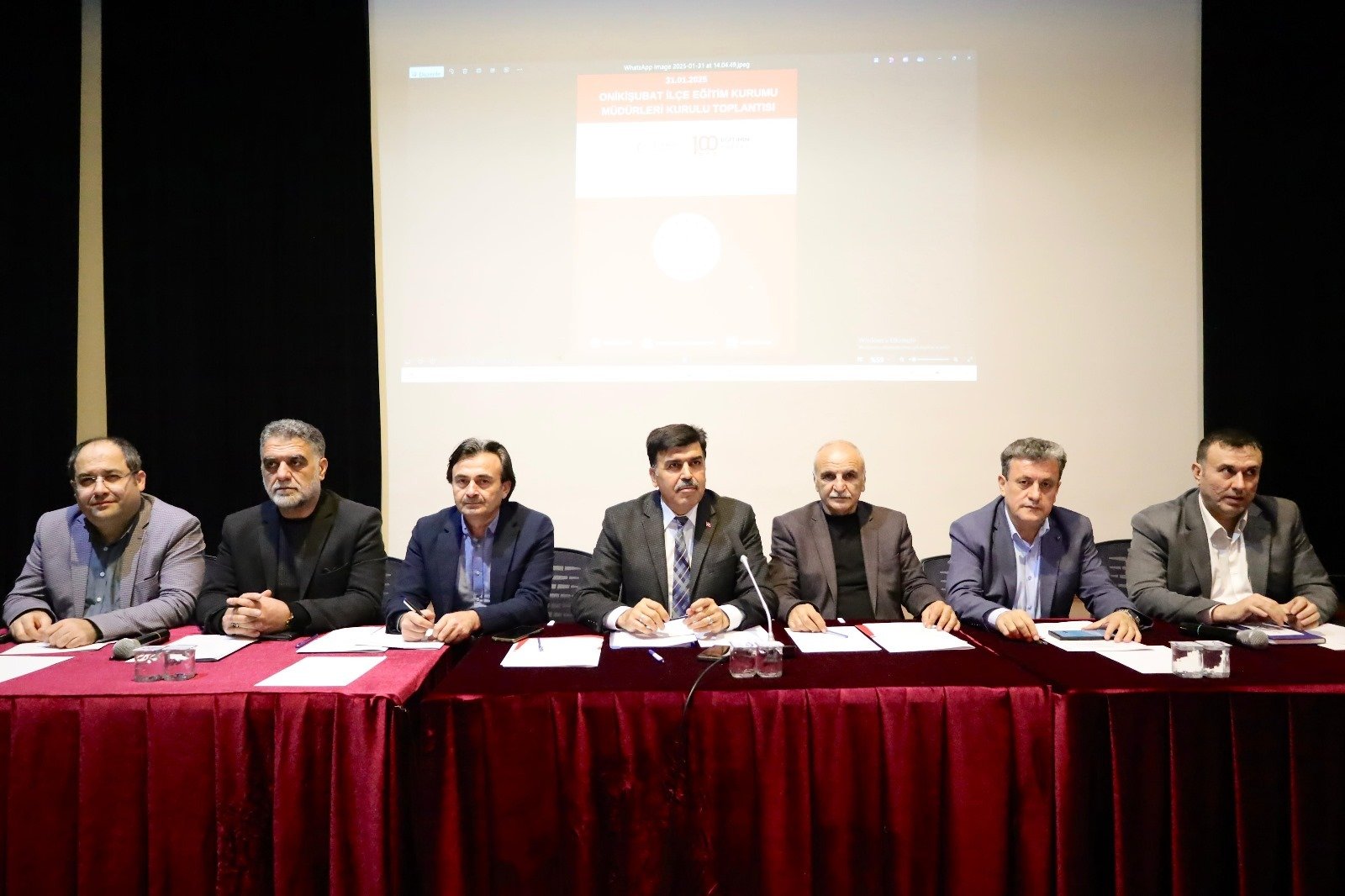 15 Temmuz Şehitler İmam Hatip Ortaokulu salonunda gerçekleşen toplantıya Onikişubat İlçe Milli Eğitim Şube Müdürleri Mehmet Ali Kaya, Şerif Irmak, Hasan Ataş, Hüseyin Arslan, Halil Akyürek, Tahir Ağırgötüren ve İlçedeki görevli okul müdürleri katıldı.
