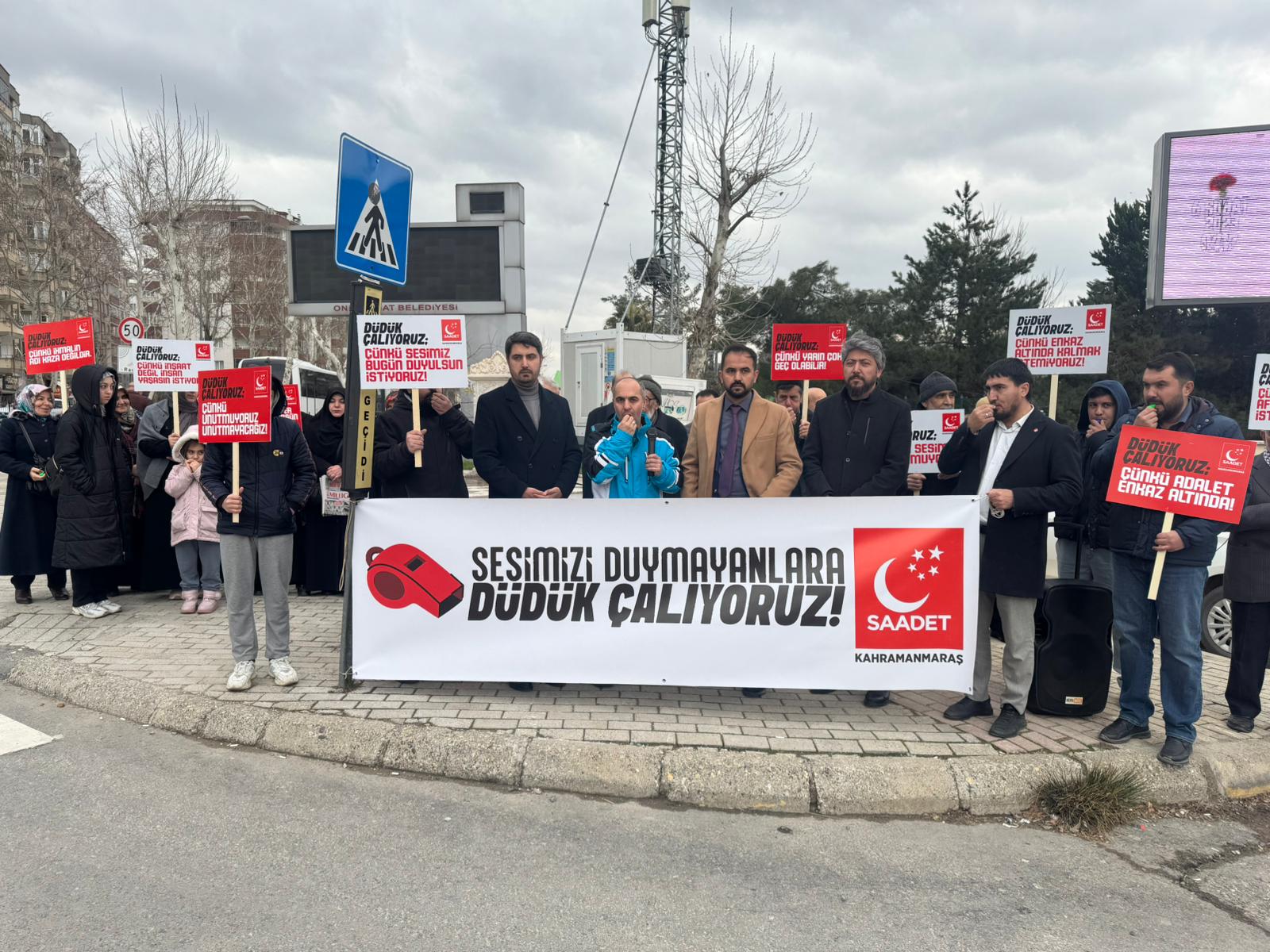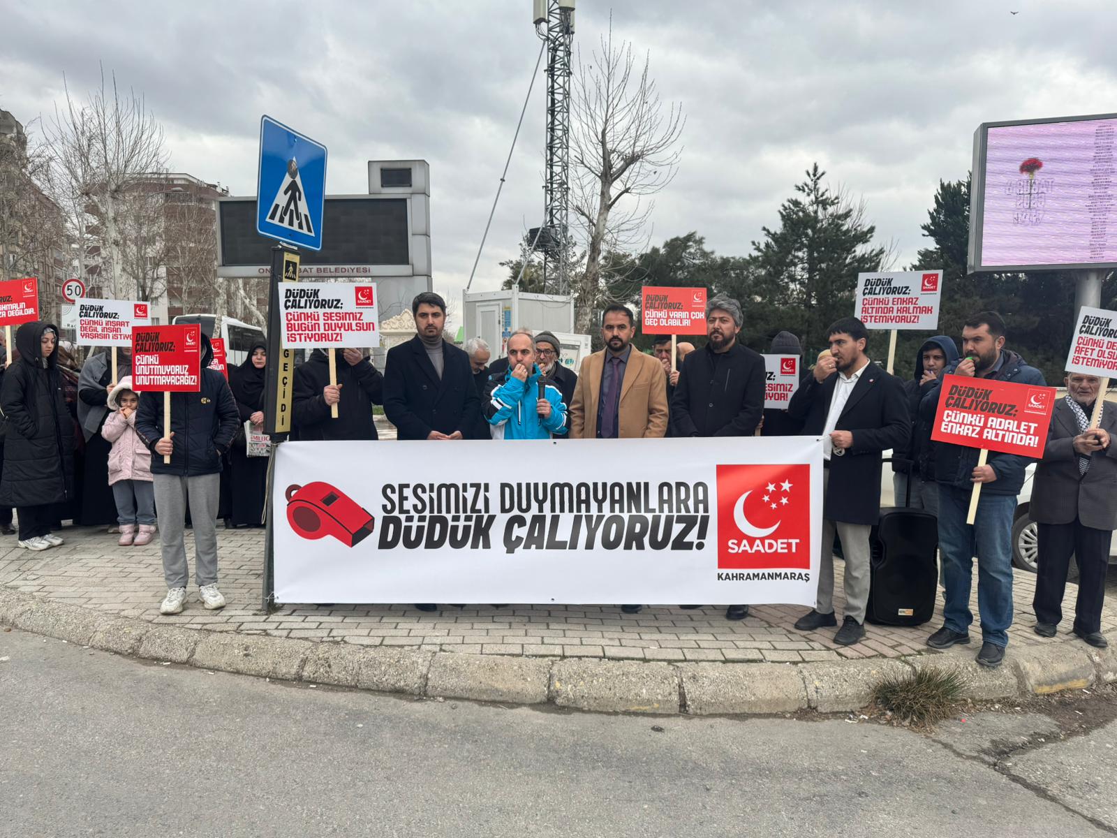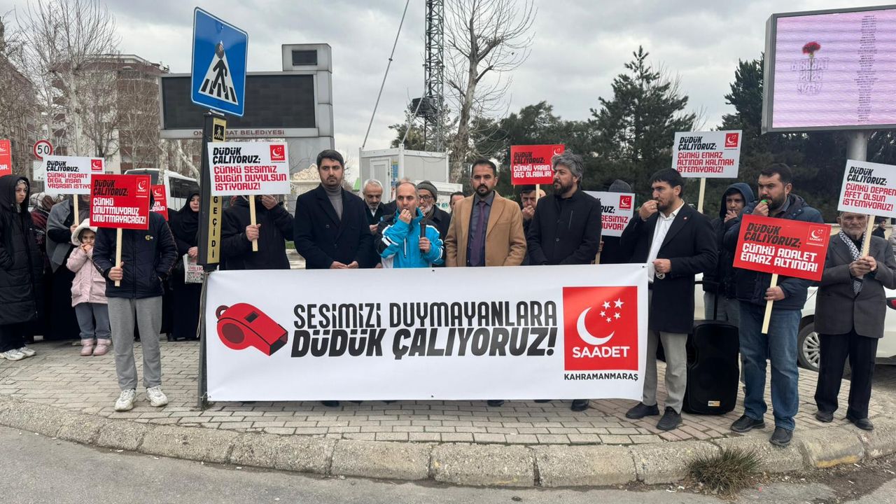 Kahramanmaraş merkezli 6 Şubat depremlerinin üçüncü yıl dönümünde, Saadet Partisi İl Başkanlığı tarafından dikkat çekici bir farkındalık etkinliği düzenlendi. “Sesimizi Duymayanlara Düdük Çalıyoruz” başlığıyla gerçekleştirilen basın açıklamasında, hayatını kaybeden vatandaşlar anıldı, yapı güvenliği ve afetlere karşı hazırlık konusunda mesajlar verildi.