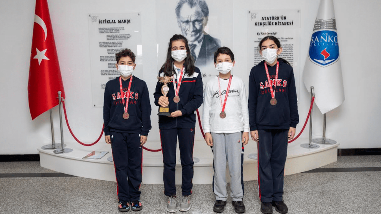 Gaziantep Üniversitesi Spor Salonu’nda düzenlenen turnuvada, SANKO Okulları öğrencileri Kutay Sakmak, Doruk Canpınar, Ahmet Arnavutoğlu, Simge Köybaşı ve Mehmet Akif Kısa’dan oluşan Yıldız Takımı, il dördüncüsü oldu.