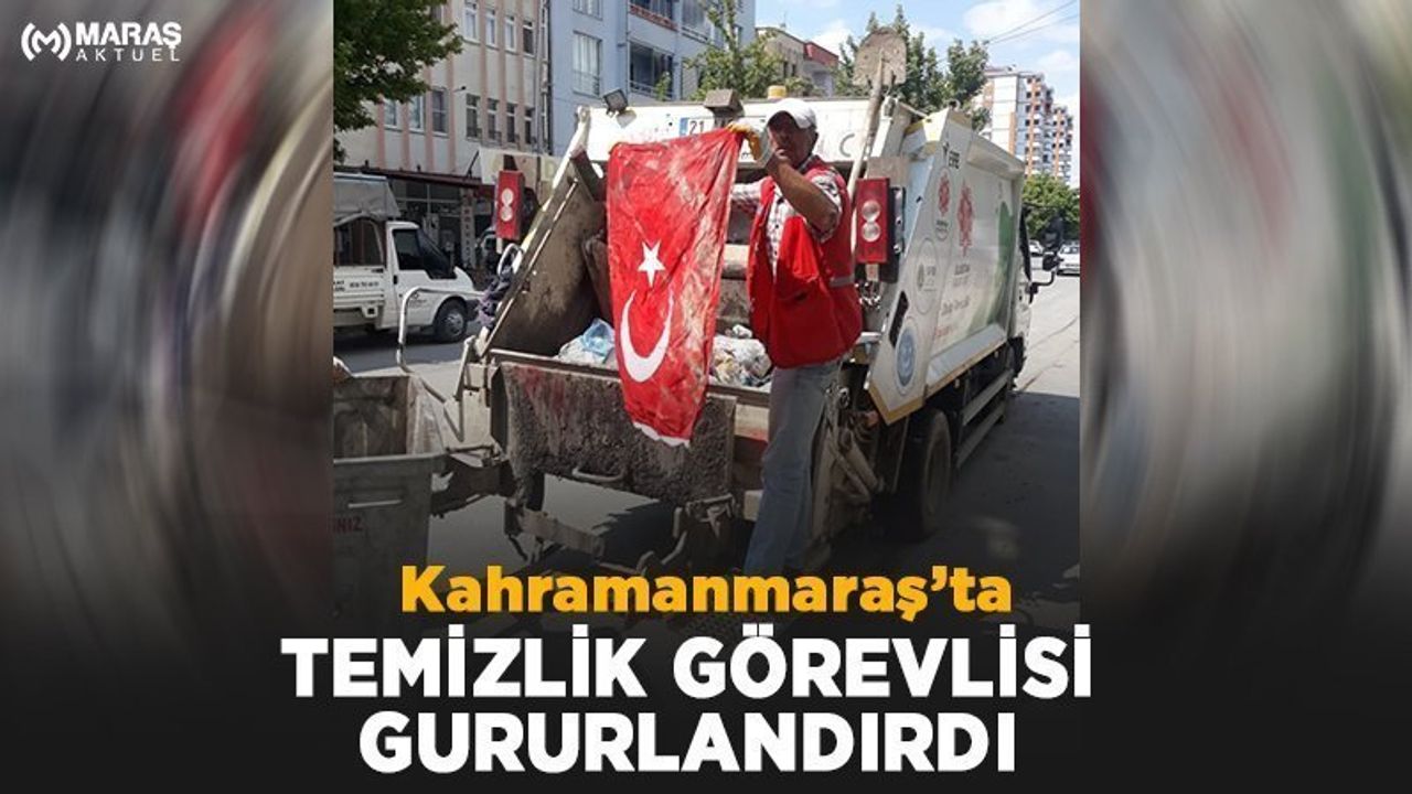 Elbistan Belediyesi’nde 5 yıldır temizlik işlerinde çalışan Duran Koç, mesai saati içerisinde Orhangazi Mahallesi’nden geçişi sırasında yerde yıpranmış Türk Bayrağını fark etti. Türk Bayrağını yerden alan Duran Koç, önce öpüp sonra muhafaza altına alması mesai arkadaşları tarafından fotoğraflandı.