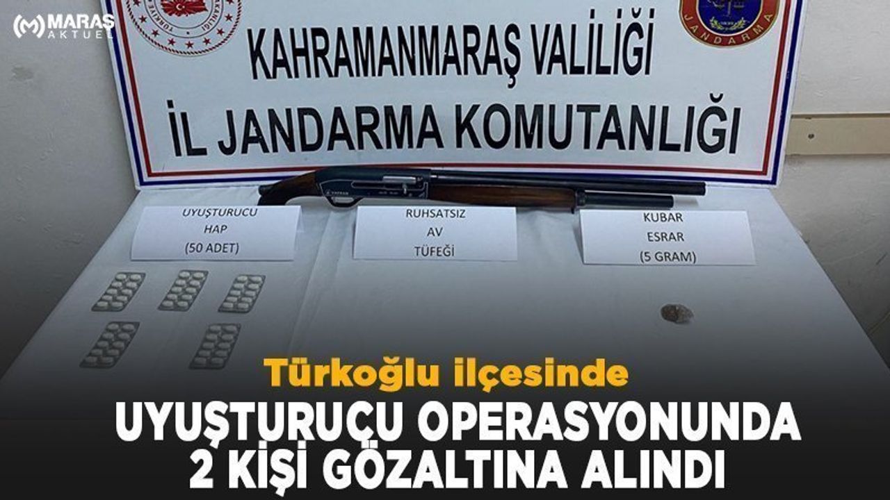 Edinilen bilgiye göre, İl Jandarma Komutanlığı ekipleri, M.D. (28) ve İ.D’nin (34) Gaziantep’ten temin ettiği uyuşturucu maddeleri Kahramanmaraş’a getireceği bilgisi üzerine operasyon yaptı. Jandarma ekipleri tarafından durdurulan otomobilde yapılan aramada, koltuk altına gizlenmiş vaziyette 1 adet ruhsatsız av tüfeği ile 50 adet uyuşturucu hap ve 5 gram kubar esrar maddesi ele geçirdi. Uyuşturucu maddelere el koyan ekipler 2 kişiyi gözaltına alarak, hakkında yasal işlem başlattı.