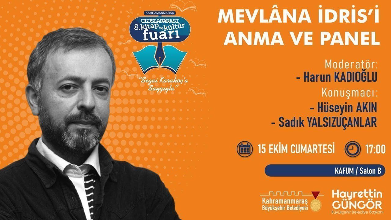 Fuarın ikinci gününde,Haziran ayında ebediyete uğurlanan Kahramanmaraşlı Yazar Mevlâna İdris’i Anma programı da gerçekleştirilecek. KAFUM B Salonu’nda gerçekleştirilecek panel, saat 17.00’da başlayacak. Moderatörlüğünü Harun Kadıoğlu’nun üstleneceği programda Şair – Yazar Hüseyin Akın ile Yazar Sadık Yalnızuçanlar, Mevlâna İdris’i anlatacak.