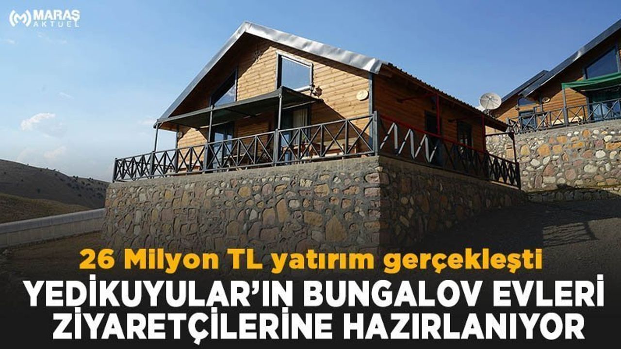 Kahramanmaraş Büyükşehir Belediyesi, kentin turizm bölgelerini katma değerli yatırımlarla canlandırıyor. Bu kapsamda, Yedikuyular Kayak Merkezi’ne yapılan projeler de bölgenin çehresini değiştirdi. Ulaşımın kesintisiz şekilde sağlandığı ve kayak donatılarının iyileştirildiği tesiste, yeni ticari ve konaklama merkezleri de oluşturulmuştu. Alt ve üstyapı çalışmaları için toplamda 26 Milyon TL bütçe ayrılan bölgede, “Bungalov Evler” de tamamlanıyor. Farklı ebatlarda 25 adet olarak yapımı gerçekleştirilen modern konaklama tesisinin iç mekânlarında son rötuşlar yapılırken, kış sezonunda hizmet vermesi hedefleniyor.
