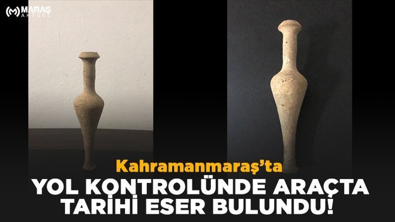 Edinilen bilgiye göre, İlçeye bağlı Karaelbistan Mahallesi'nde yapılan yol kontrolü esnasında bir otomobil içerisinde Roma Dönemine ait olduğu değerlendirilen 1 adet koku şişesi ele geçirildi. Olayla ilgili yasal işlem başlatıldı.